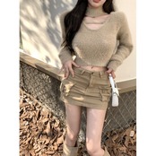 セーター オータムショートトップス ロング 大人ガーリー スウィート キュート カジュアル 秋物 10/5 秋冬 オータム ウインター ナチュラル mi4624254987580