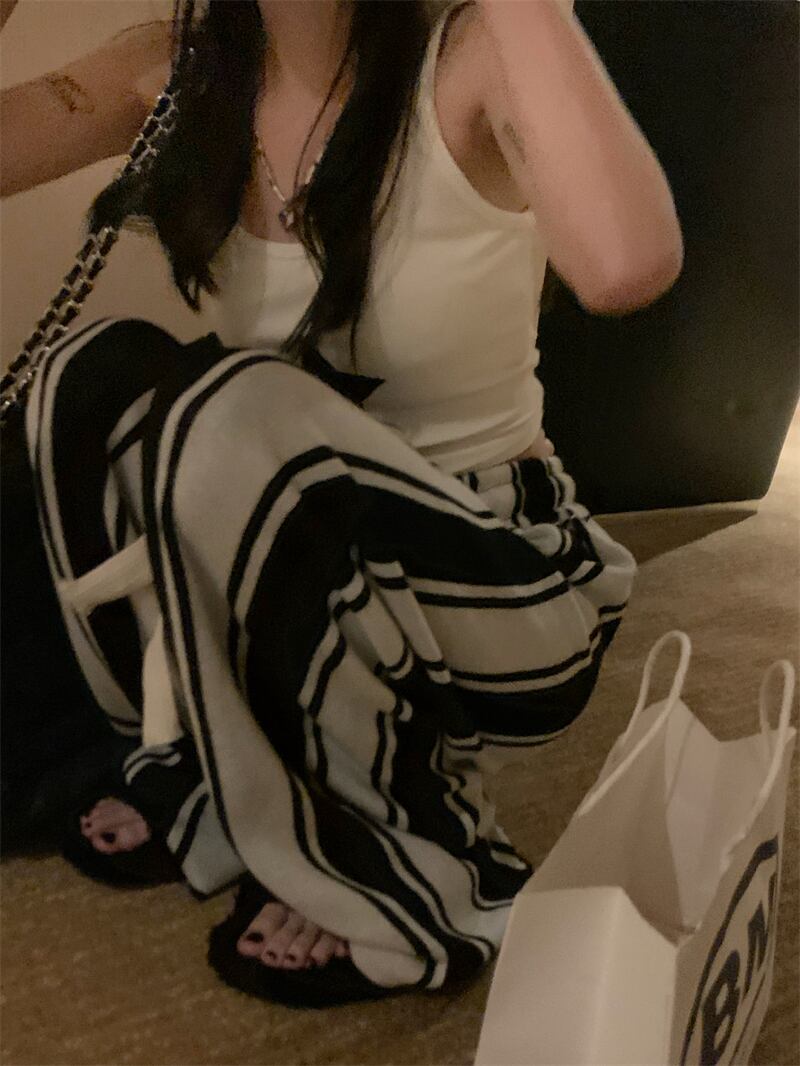 スタイルカラーストライプギャザーカジュアルパンツ オータムハイウェストウェスト薄手ニット 秋物 10/5 秋冬 オータム ウインター ナチュラル mi4626957006852