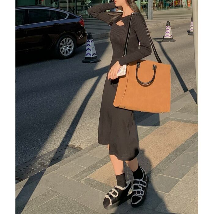 スリムニットドレス オータムウェストAラインスカート 秋物 10/5 秋冬 オータム ウインター ナチュラル mi4627903270784