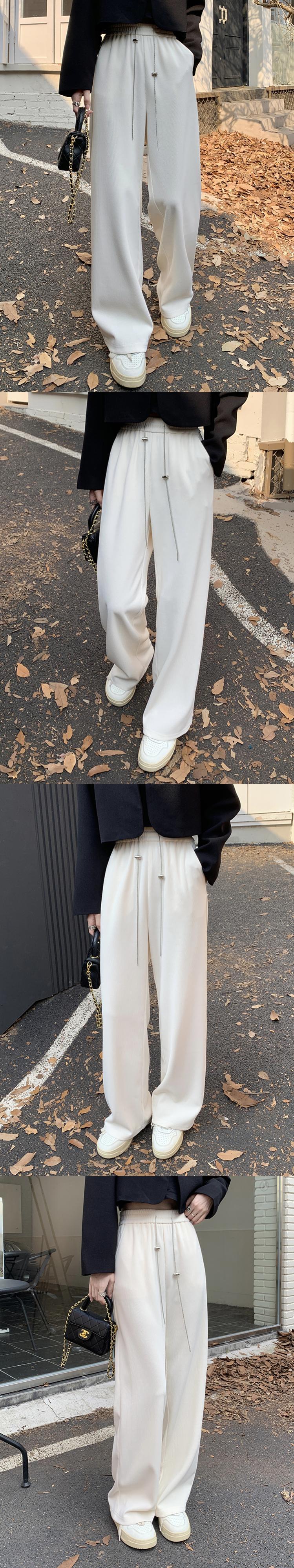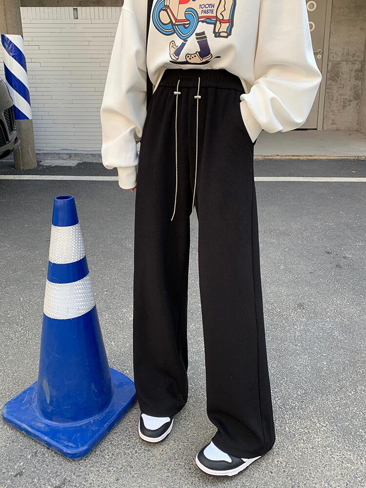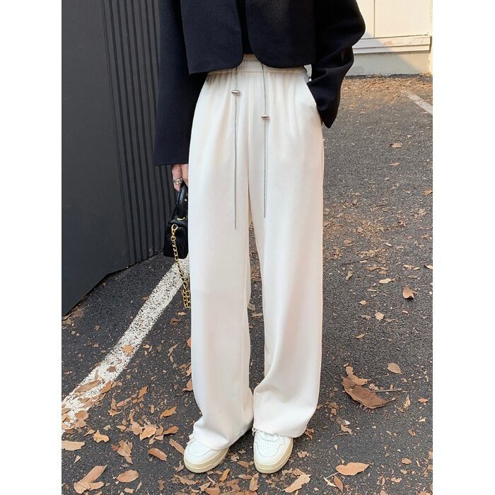 チェーン ギャザーブラックカジュアルパンツ オータムルーズワイドレッグハイウェストウェストロング 秋物 ワイドパンツ 10/5 秋冬 オータム ウインター ナチュラル mi4617818492867