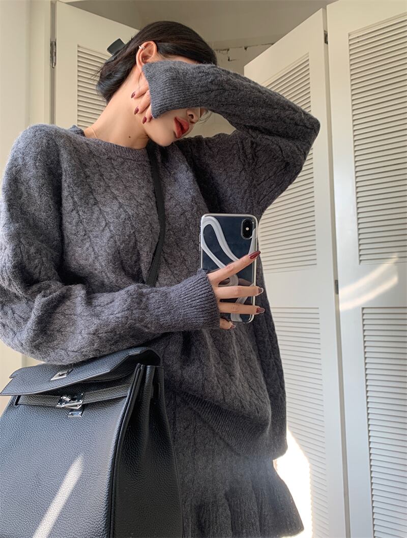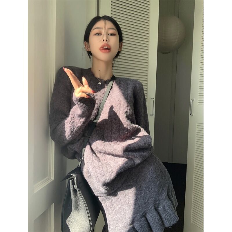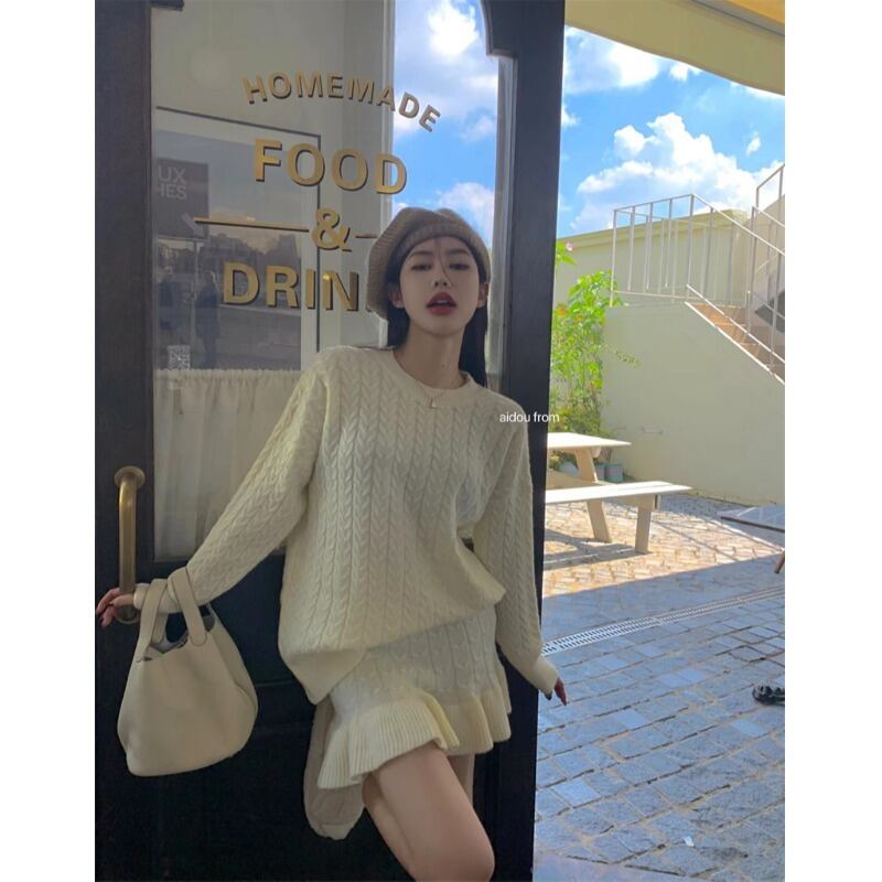 ニットスカート オータムウィンタースタイルルーズセーター スリムショートセット 秋物 冬物 10/5 秋冬 オータム ウインター ナチュラル mi4671897799595