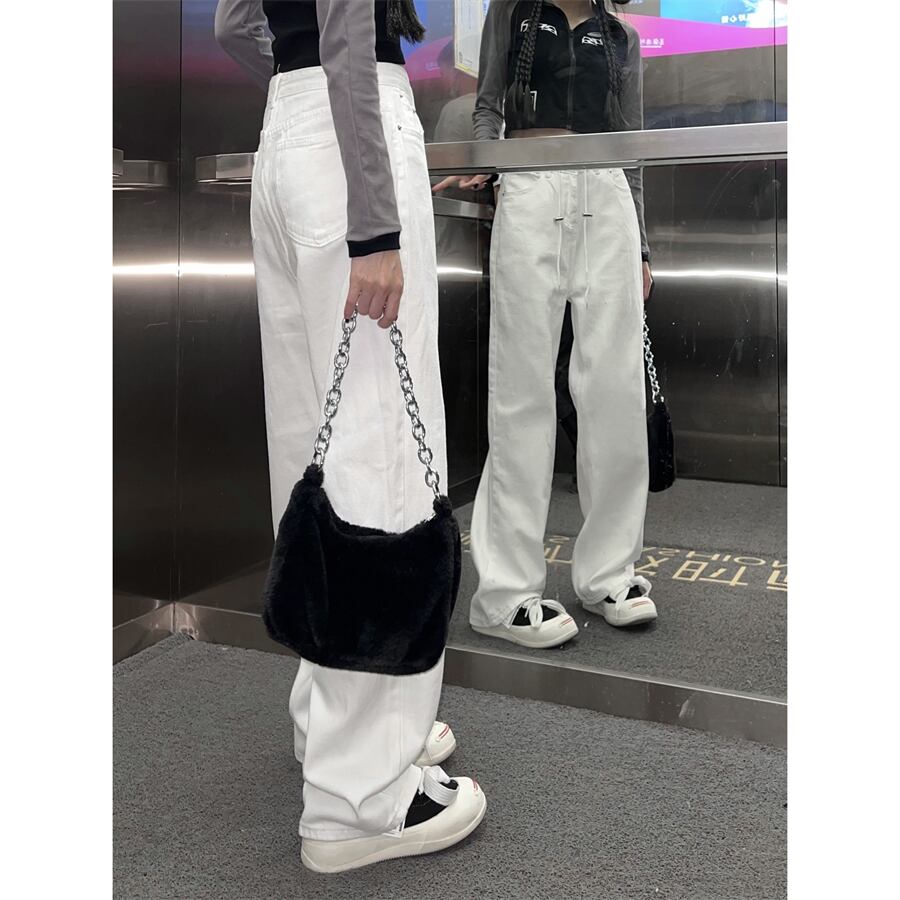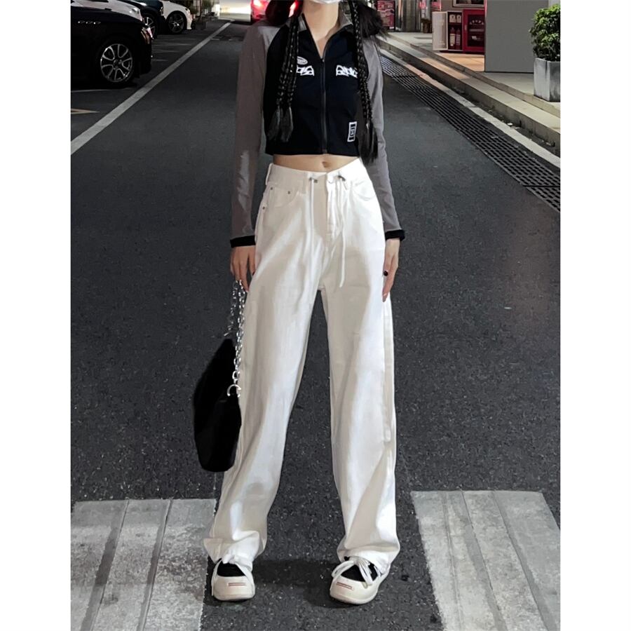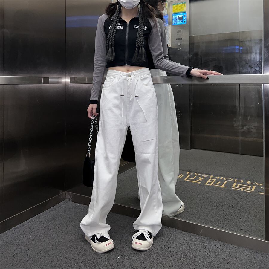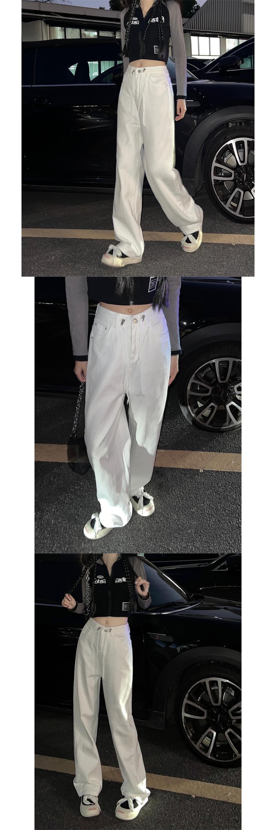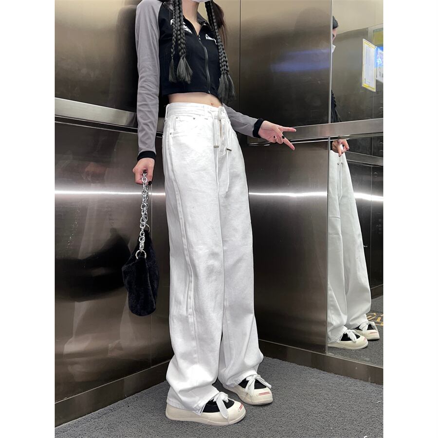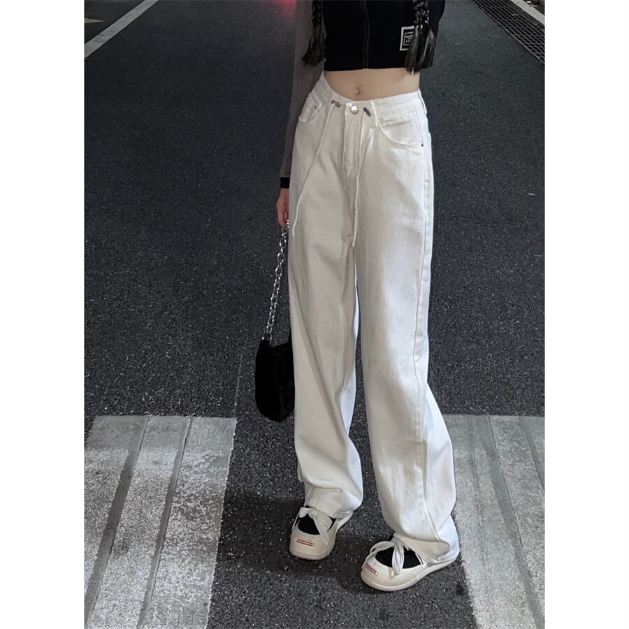 ホワイトハイウェストジーンズ オータムルーズ薄手パンツ 秋物 10/5 秋冬 オータム ウインター ナチュラル mi4653444857217