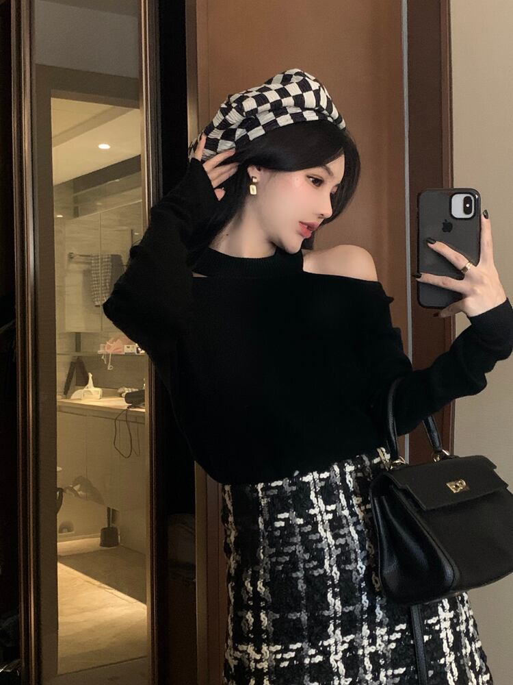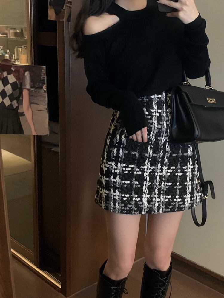 色:ブラックニットセーターワンピース,ワンピーススカート