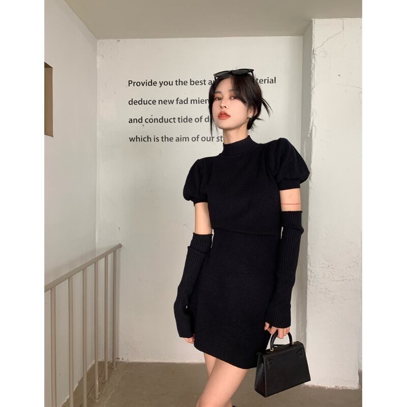スリーブニットドレス オータムスタイル薄手プルオーバー スカート 秋物 10/5 秋冬 オータム ウインター ナチュラル mi4685503603401