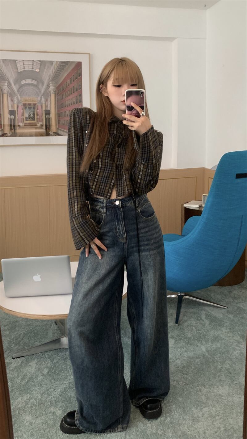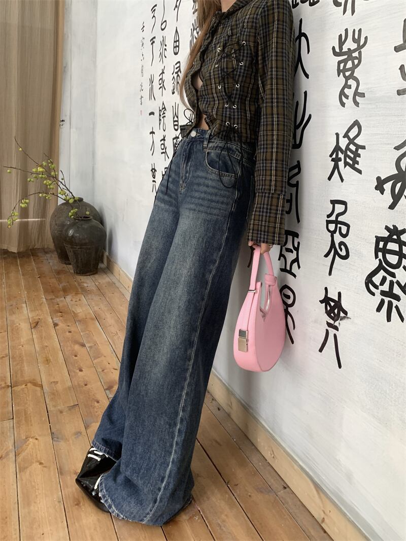 スタンダードハイウェストウェストジーンズ オータムルーズ薄手パンツ レトロ ストリート 秋物 10/5 秋冬 オータム ウインター ナチュラル mi4668476910784