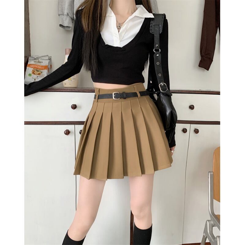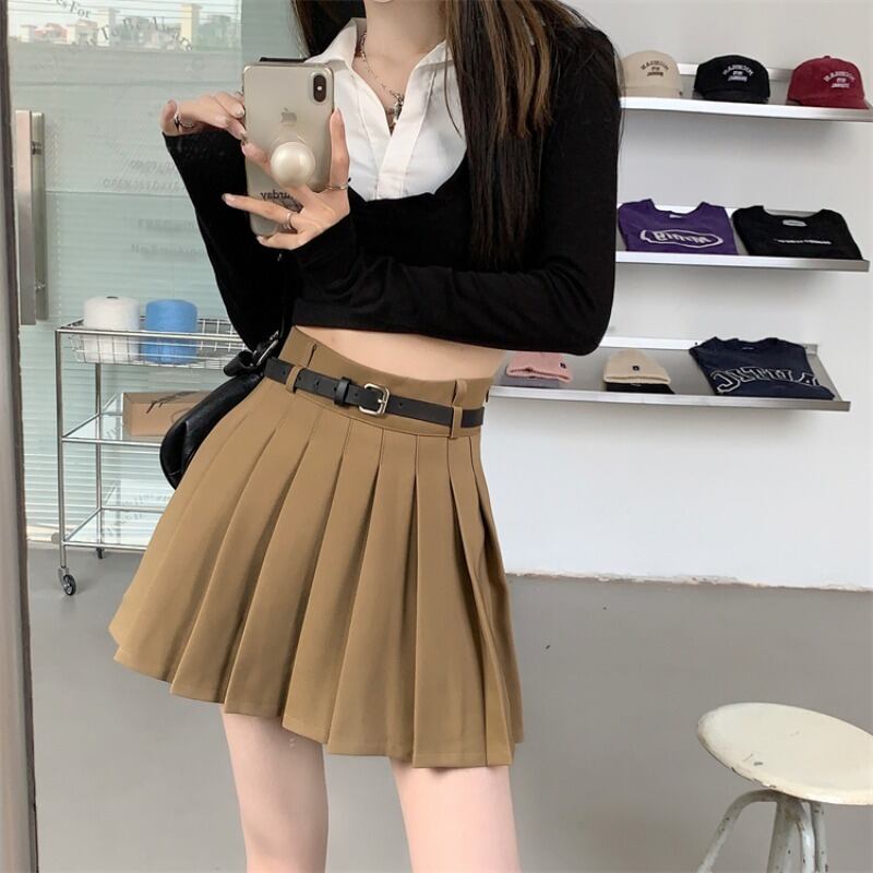 スタンダードハイウェストウェストプリーツスカート オータム薄手Aライン レトロ 秋物 10/5 秋冬 オータム ウインター ナチュラル mi4624238498634