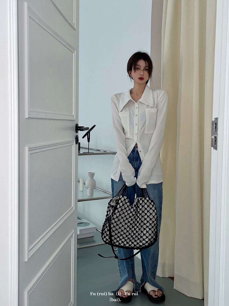 ホワイトシャツ オータムスリムトップス ロング 秋物 10/5 秋冬 オータム ウインター ナチュラル mi469895415914