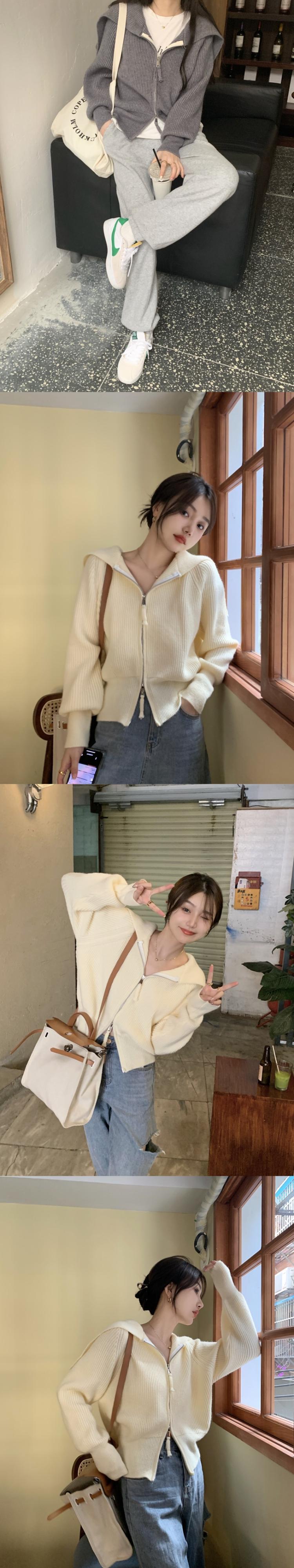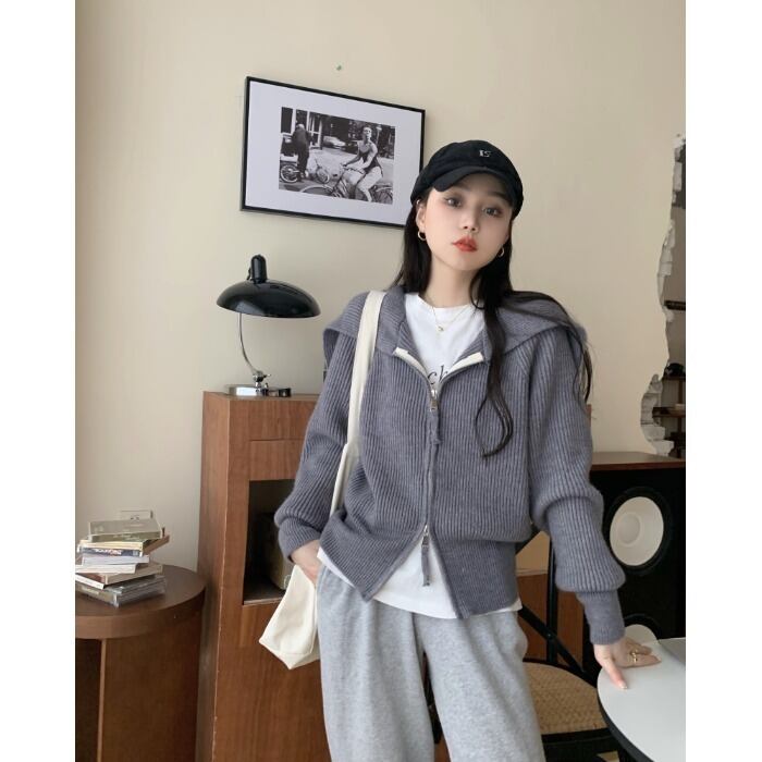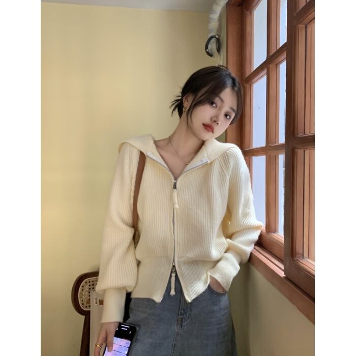 ジッパーセーター ジャケット オータムスタンダードショートニットカーディガントップス レトロ 秋物 10/5 秋冬 オータム ウインター ナチュラル mi4621083749768
