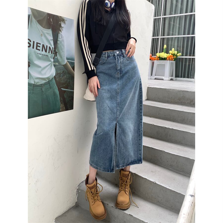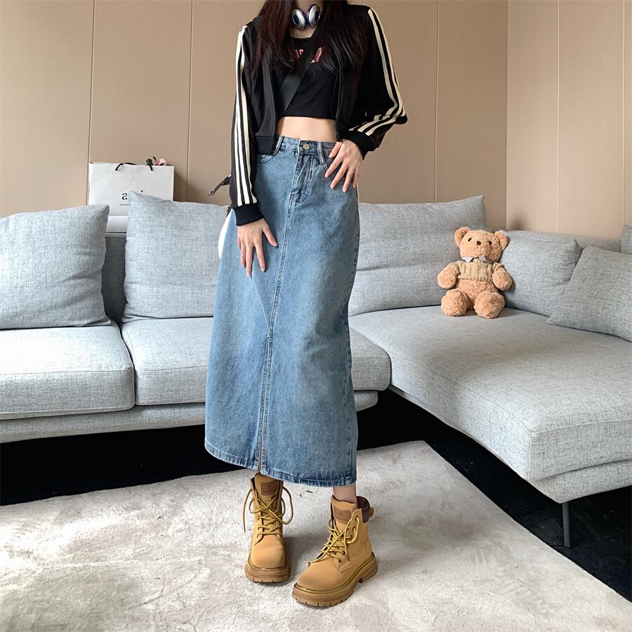 スタンダードハイウェストウェストスリムスカート オータムルーズ レトロ 秋物 10/5 秋冬 オータム ウインター ナチュラル mi4670043447632