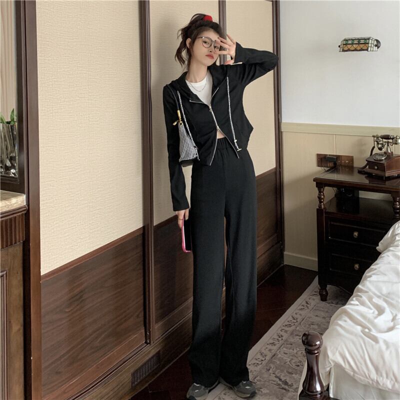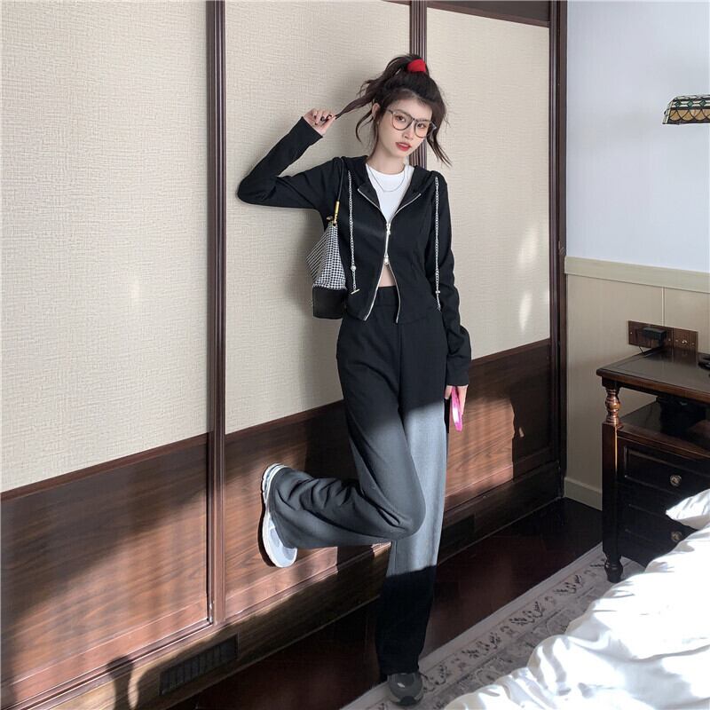 色:ブラックトップシングルピース,グレートップシングルピース,黒のワイドレッグパンツ,グレーのワイドレッグパンツ