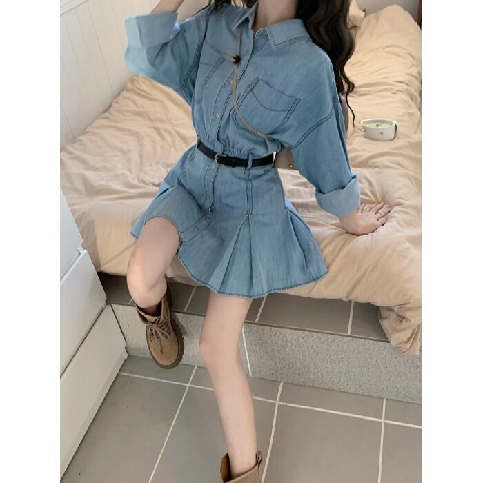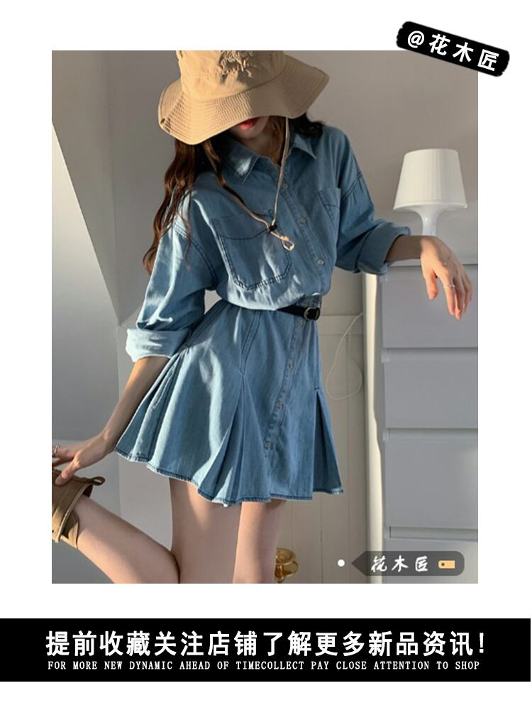 スタイルスタンダードシャツ ドレス サマーウェスト薄手プリーツAラインスカート レトロ 夏物 10/5 秋冬 オータム ウインター ナチュラル mi4678238743067