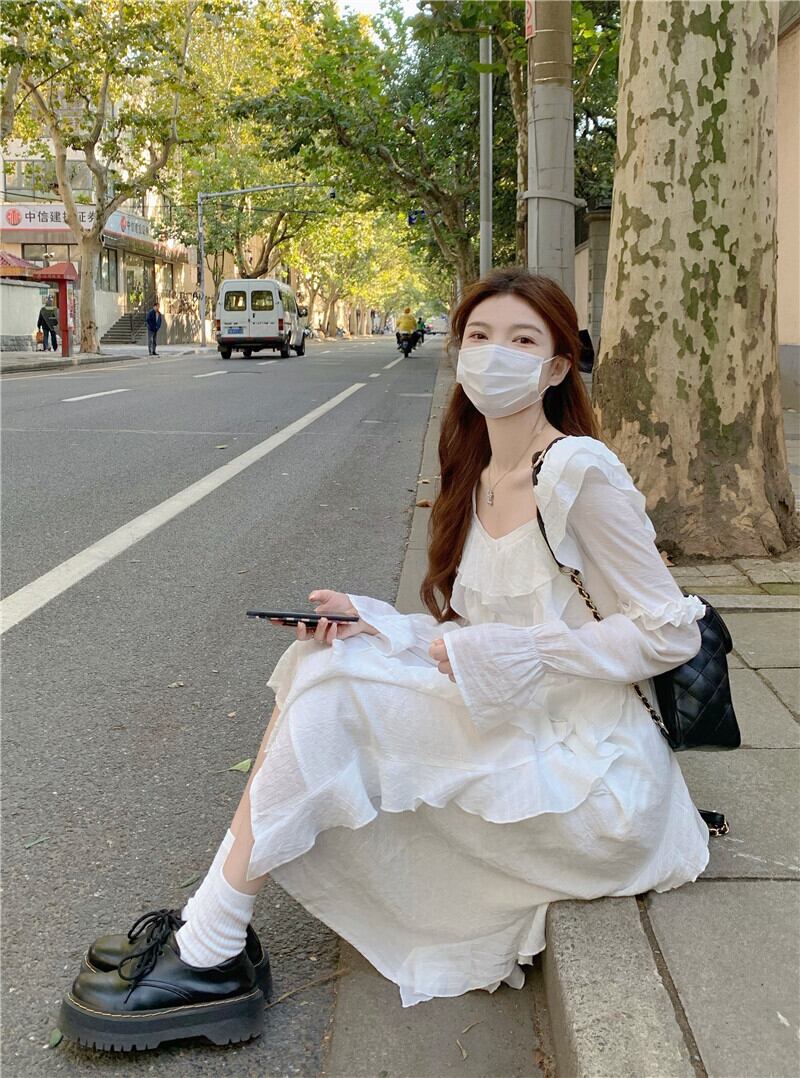 ホワイトドレス オータムVネックウェストスカート 秋物 10/5 秋冬 オータム ウインター ナチュラル mi462623351679