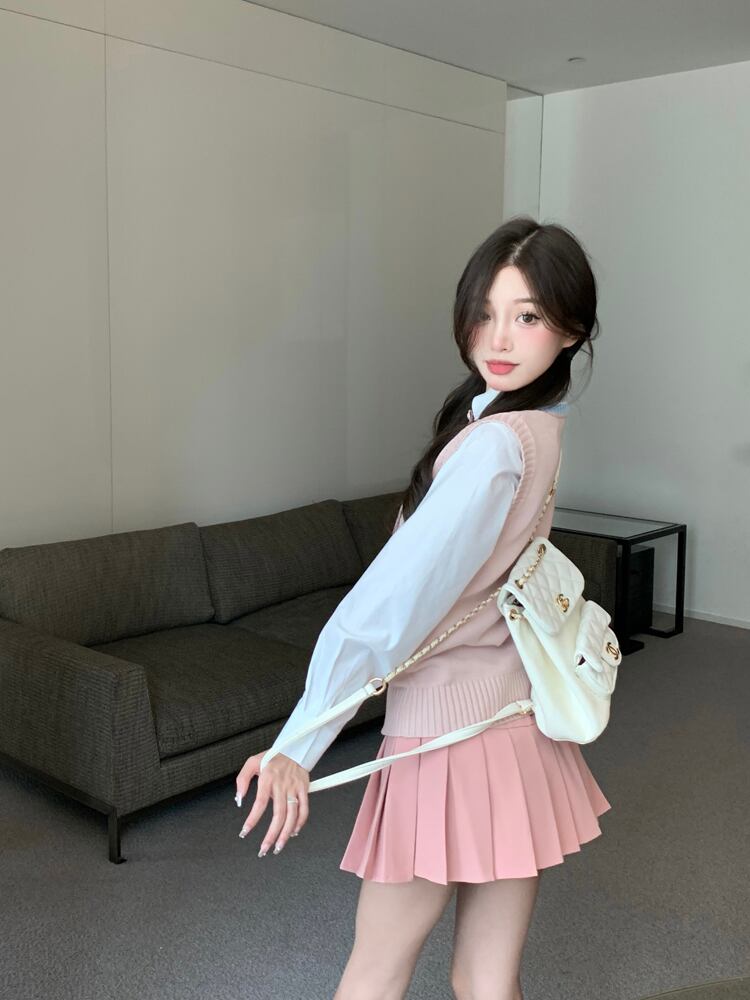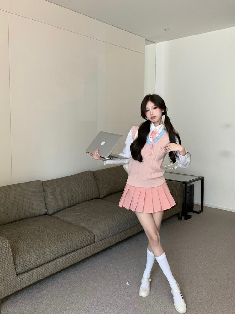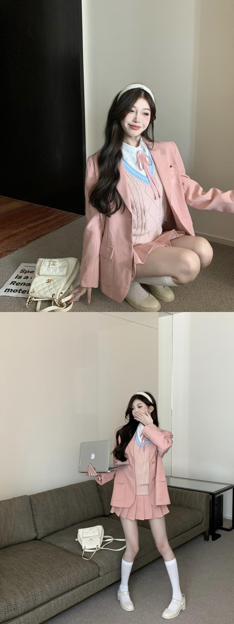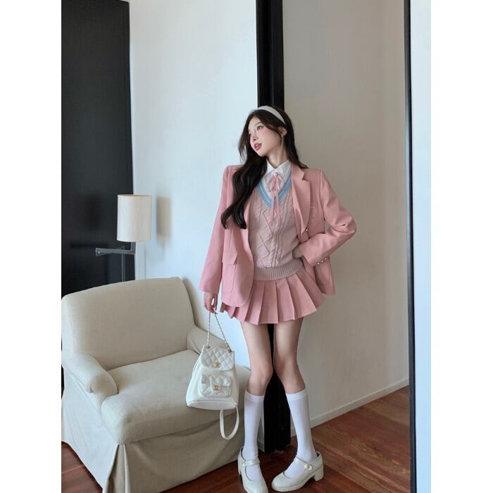 色:シャツ+蝶ネクタイ,ニットベストシングルピース,短いスカート,ブレザー一枚