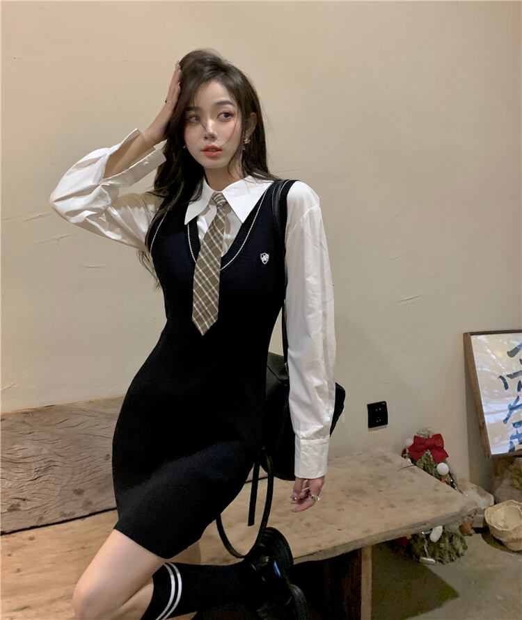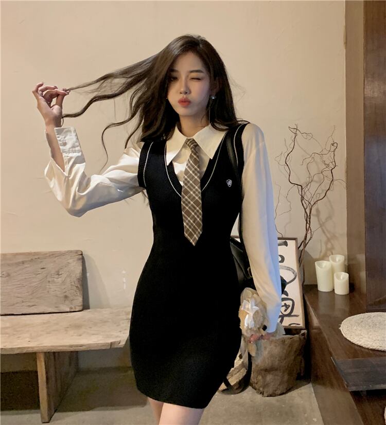 スタイルVネックブラックノースリーブニットドレス オータムスリムフィットショートスカート 秋物 10/5 秋冬 オータム ウインター ナチュラル mi4645884791196