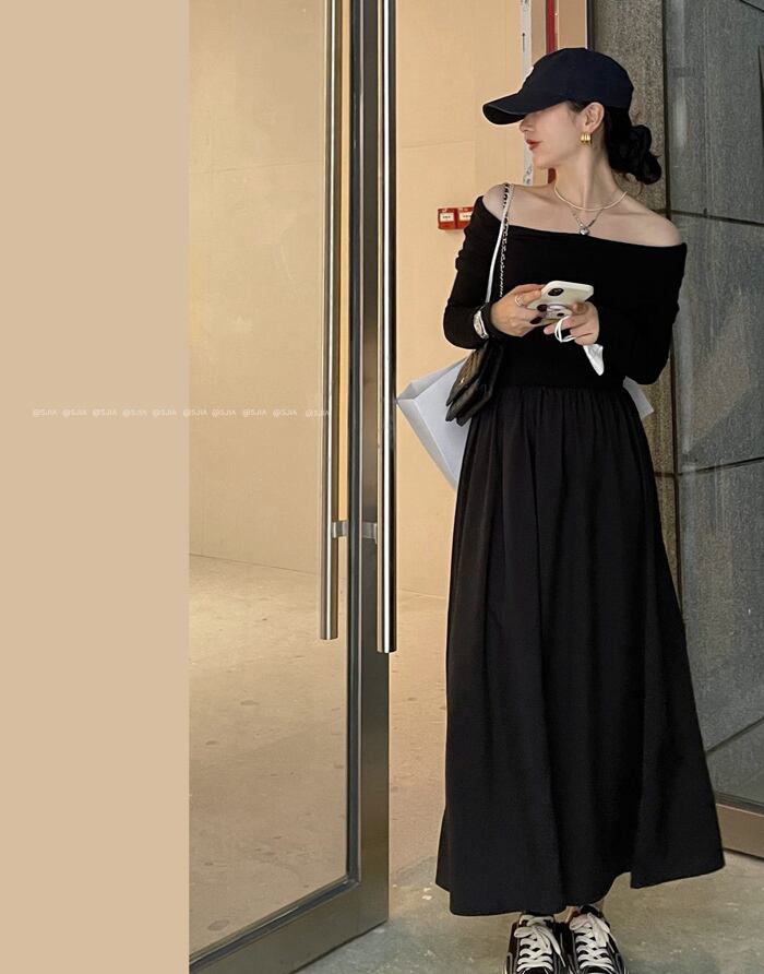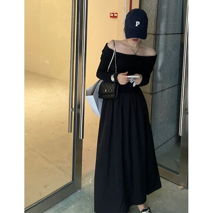 ブラックロングドレス オータムウェストスリムスカート カジュアル 秋物 10/5 秋冬 オータム ウインター ナチュラル mi4675006296467