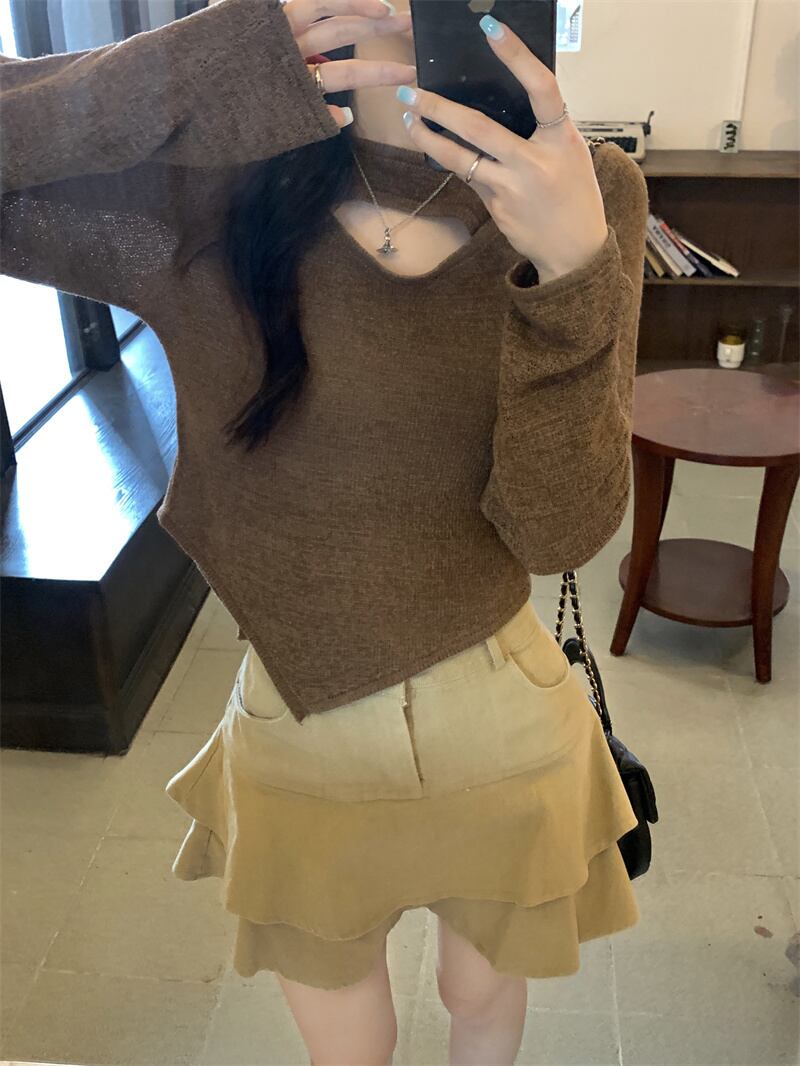 セーター オータムルーズショートトップス ロング 秋物 10/5 秋冬 オータム ウインター ナチュラル mi4686542090895