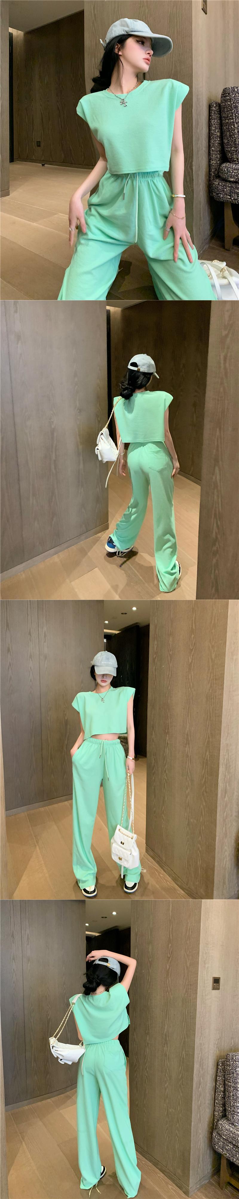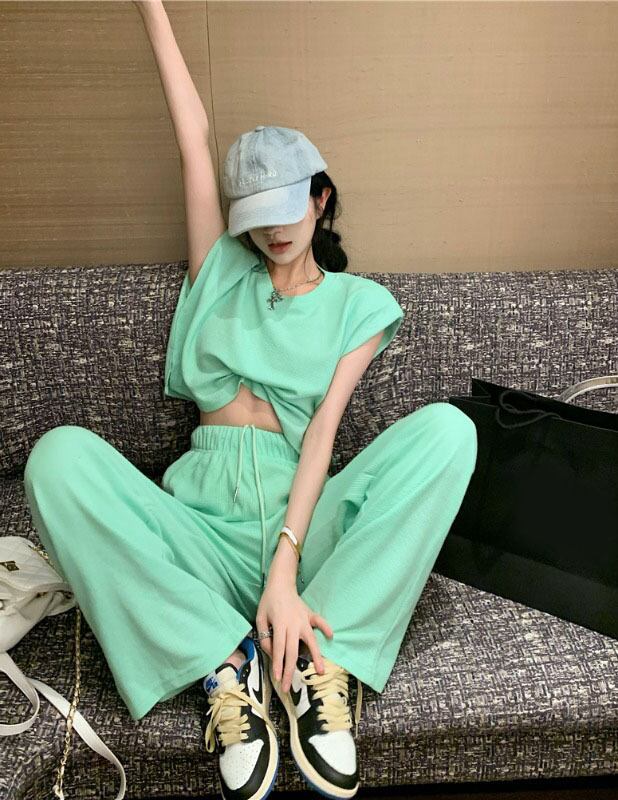 グリーンサマートップス ルーズカジュアルパンツ セット 夏物 10/5 秋冬 オータム ウインター ナチュラル mi4664064678472