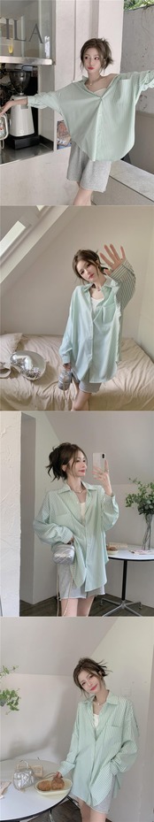 薄手ストライプシャツ オータムルーズカーディガントップス ロング 秋物 10/5 秋冬 オータム ウインター ナチュラル mi4643964691000