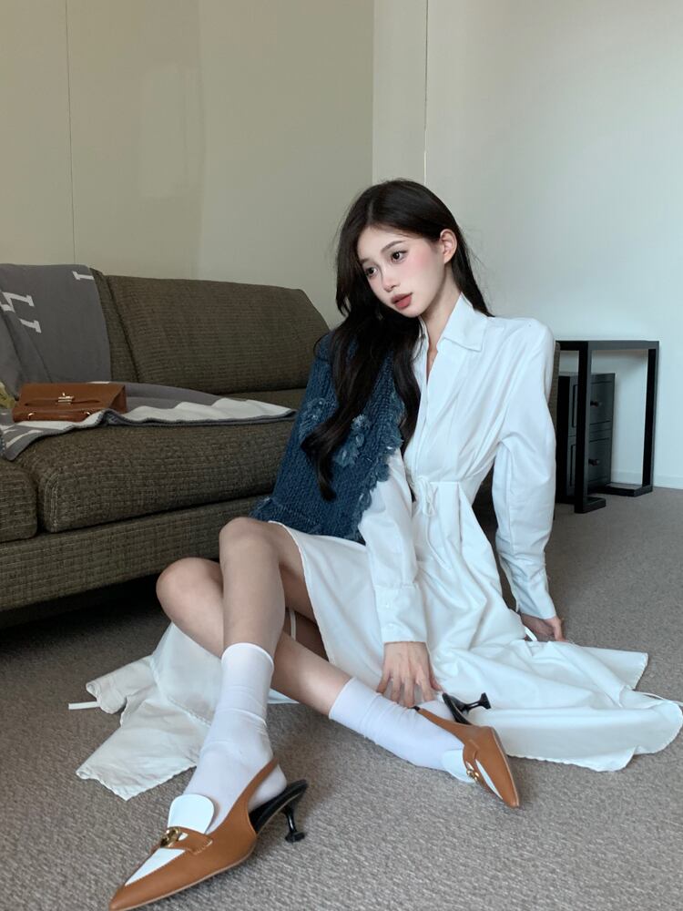 シャツ ドレス オータムウェスト薄手スカート 秋物 10/5 秋冬 オータム ウインター ナチュラル mi4659588586362