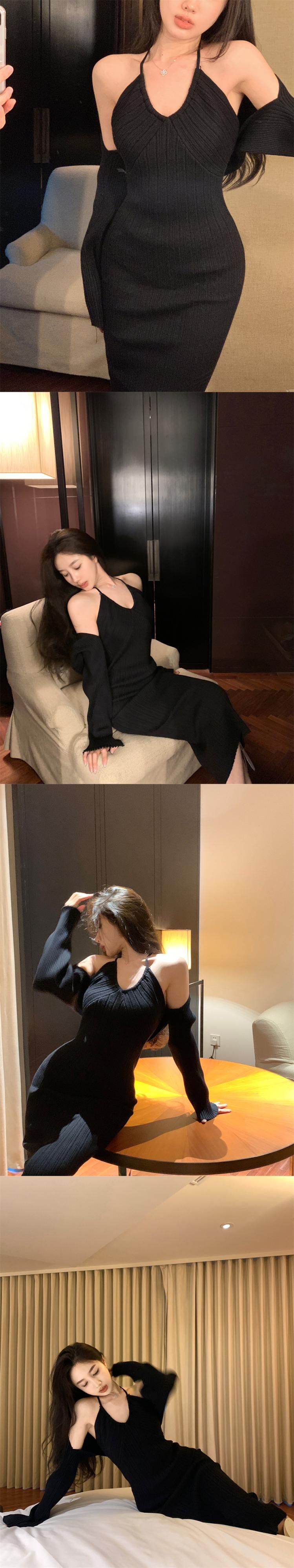 スタンダードニットスカート オータムスリムドレス ショートカーディガントップス セット レトロ 秋物 10/5 秋冬 オータム ウインター ナチュラル mi4644939584531