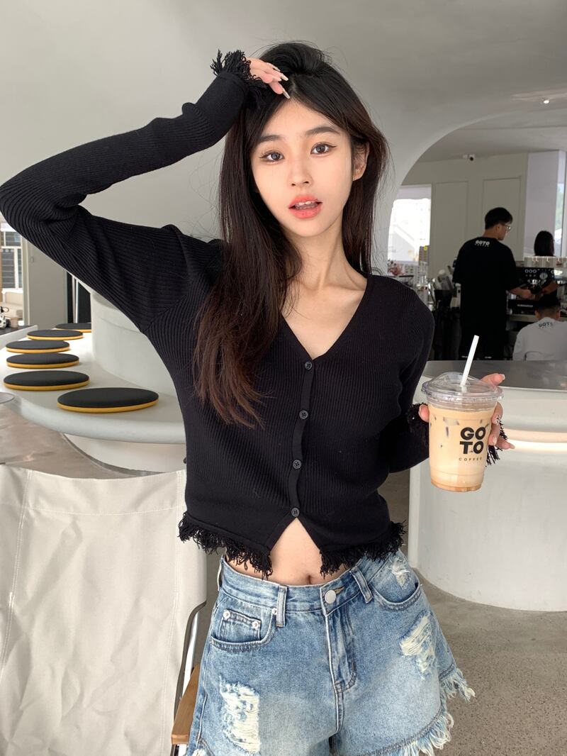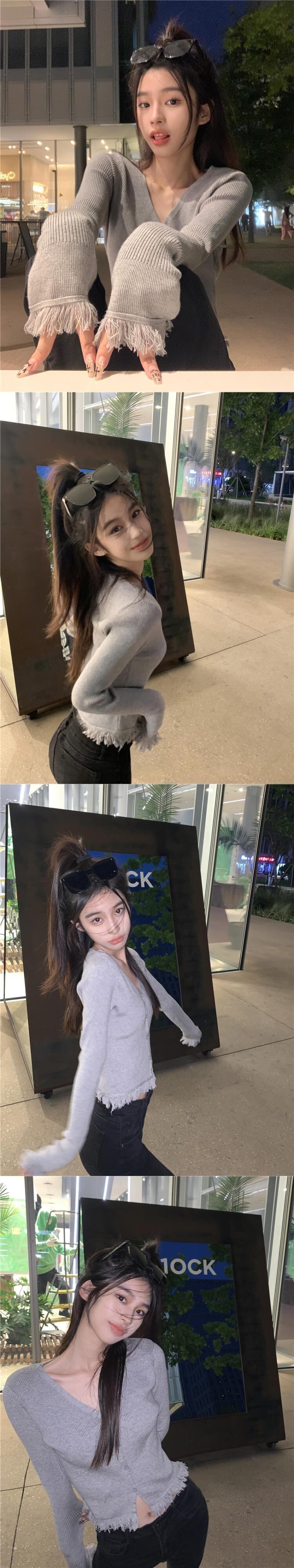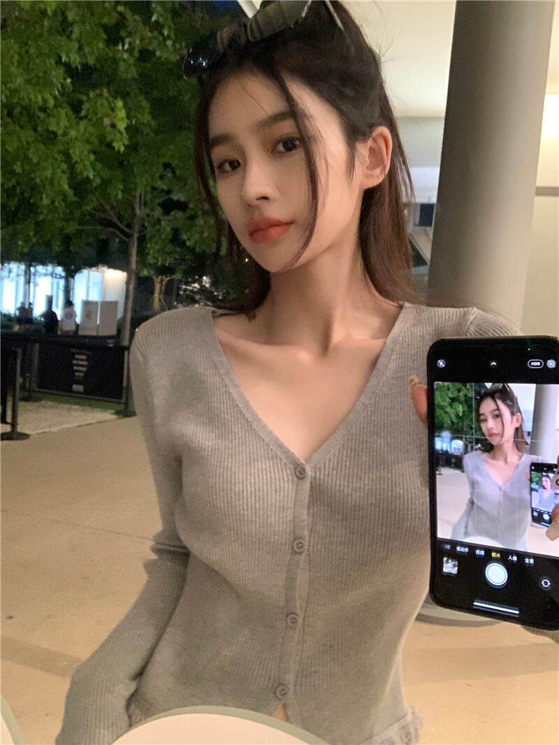 スタイルソリッド カラーVネックセーター オータムスリムショートカーディガントップス ロング 秋物 ソリッドカラー 10/5 秋冬 オータム ウインター ナチュラル mi462823515851