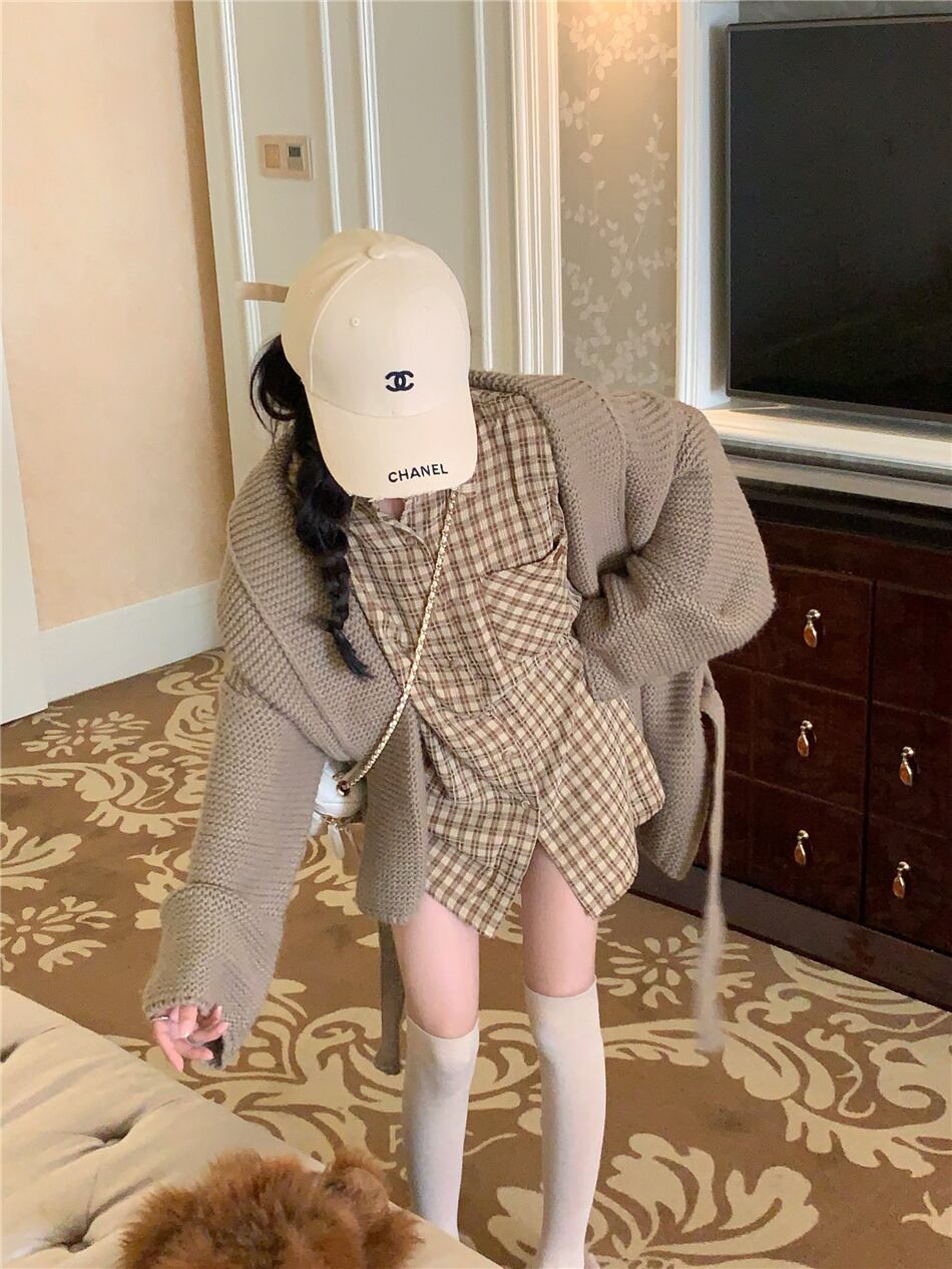 セーター コート オータムウィンタースタンダードウェストニットカーディガン レトロ 秋物 冬物 10/5 秋冬 オータム ウインター ナチュラル mi463717017405