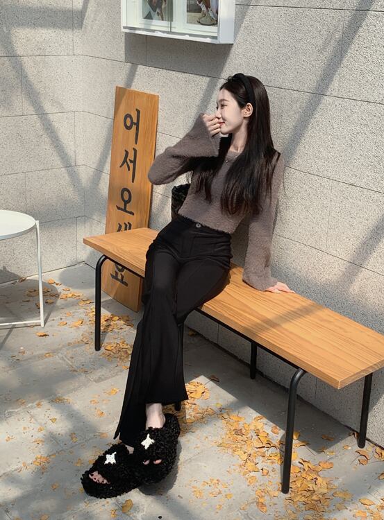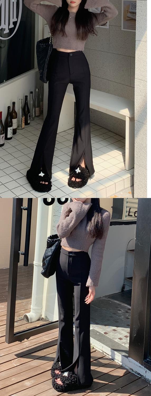 ベルベットブラックカジュアルパンツ オータムウィンターハイウェストスリムスリット 秋物 冬物 10/5 秋冬 オータム ウインター ナチュラル mi4635463287753