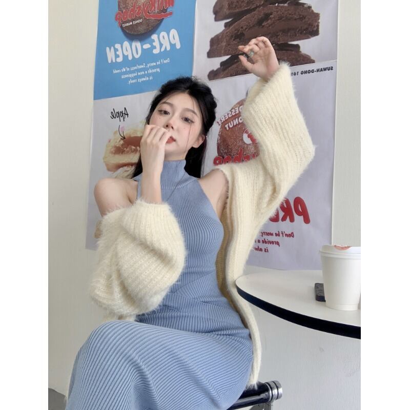 色:ブルーニットスカート,ピンクキャメルニットスカート,ぬいぐるみ