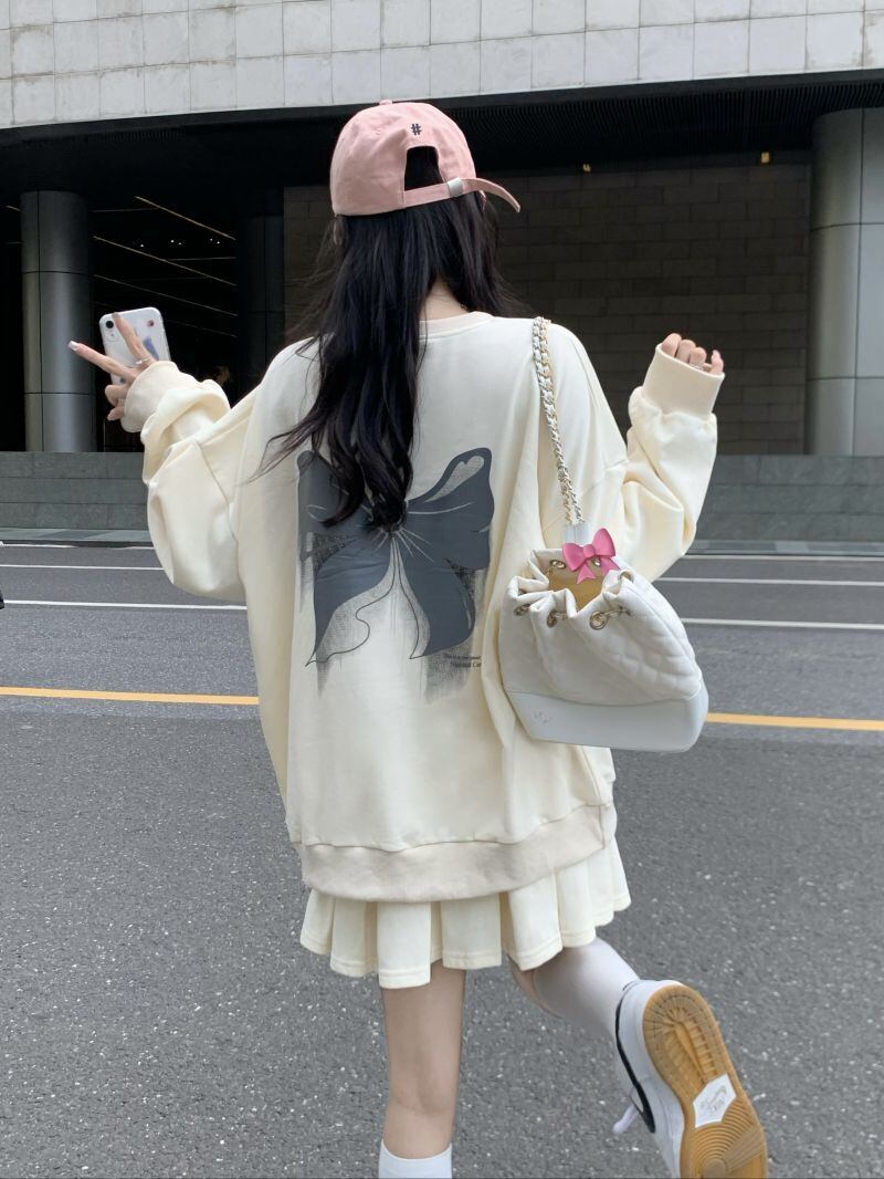 ルーズリボンセーター オータムプリーツスカート カジュアルセット 秋物 10/5 秋冬 オータム ウインター ナチュラル mi4694930936559