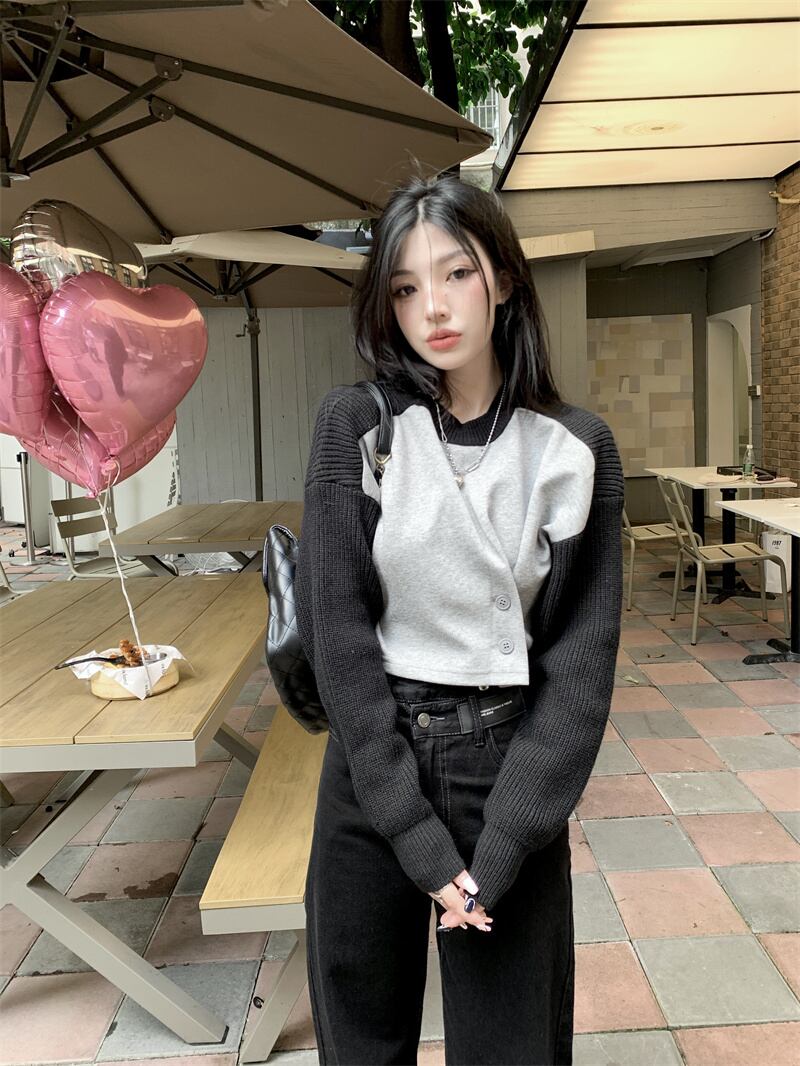 スタイルカラーニットラウンドネックセーター オータムルーズショートトップス 秋物 Oネック ステッチ 10/5 秋冬 オータム ウインター ナチュラル mi4637295356900