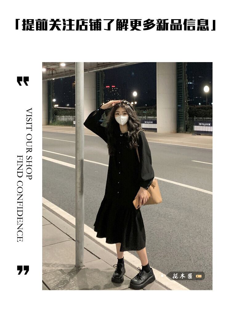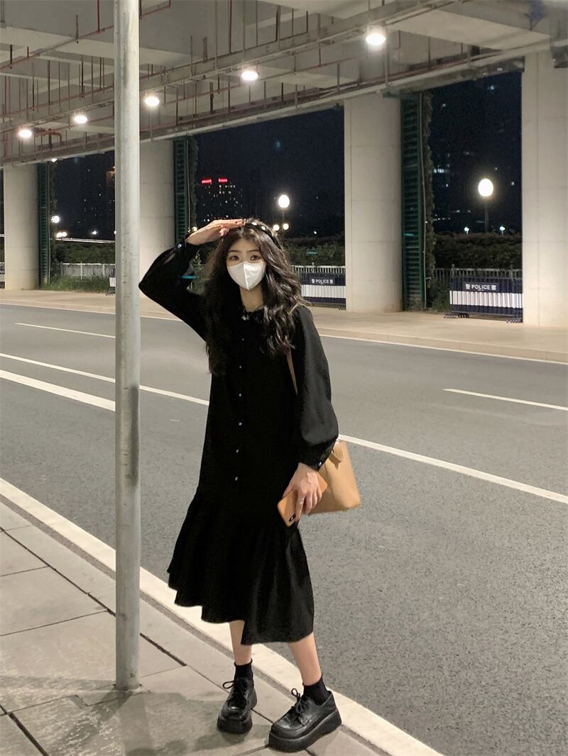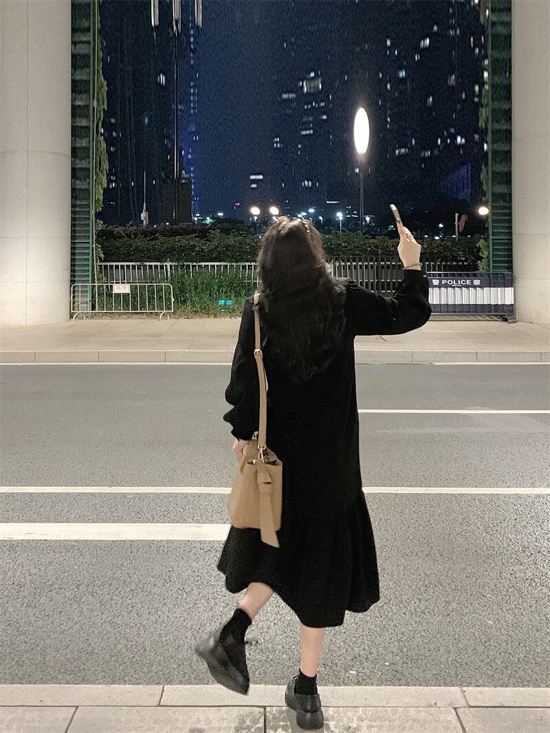 スタイルスタンダードブラックドレス オータムルーズシャツ スカート ロング レトロ 秋物 10/5 秋冬 オータム ウインター ナチュラル mi4692880101281