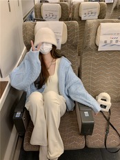 ブルーフードセーター コート オータムルーズニットカーディガントップス 秋物 10/5 秋冬 オータム ウインター ナチュラル mi4685378053462