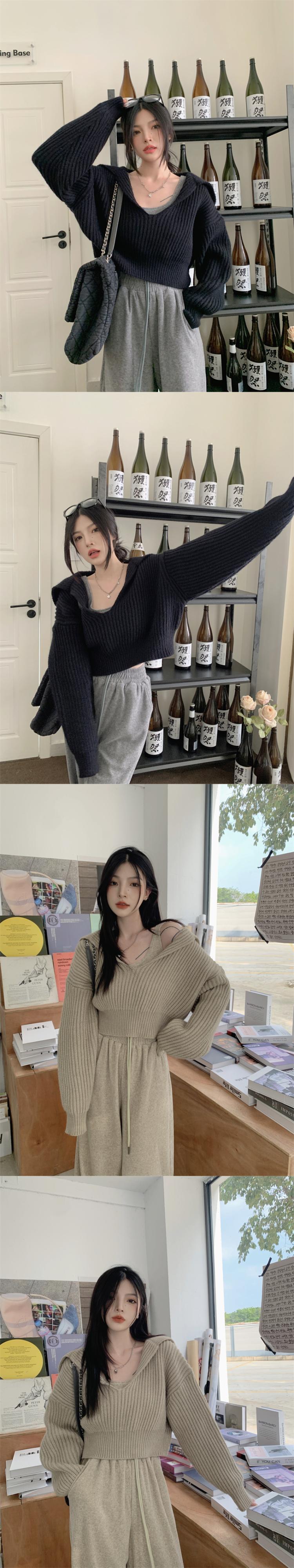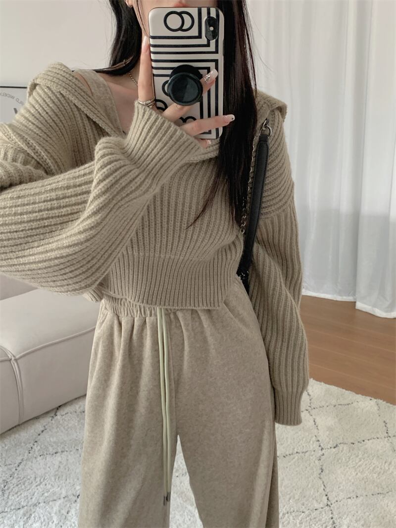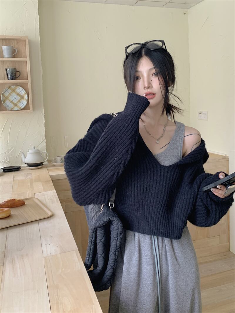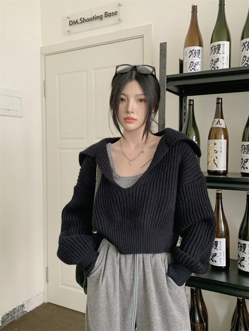 スタンダード薄手セーター オータムルーズショートニットトップス ロング レトロ 秋物 10/5 秋冬 オータム ウインター ナチュラル mi4662251041049