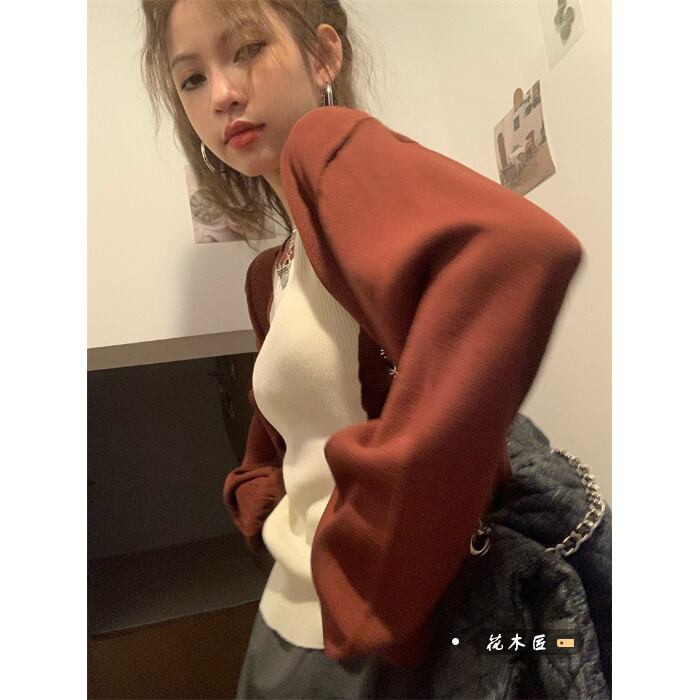 スタンダードニットカーディガンオータムスタイル薄手ショートトップス ロング レトロ 秋物 10/5 秋冬 オータム ウインター ナチュラル mi4645657752966