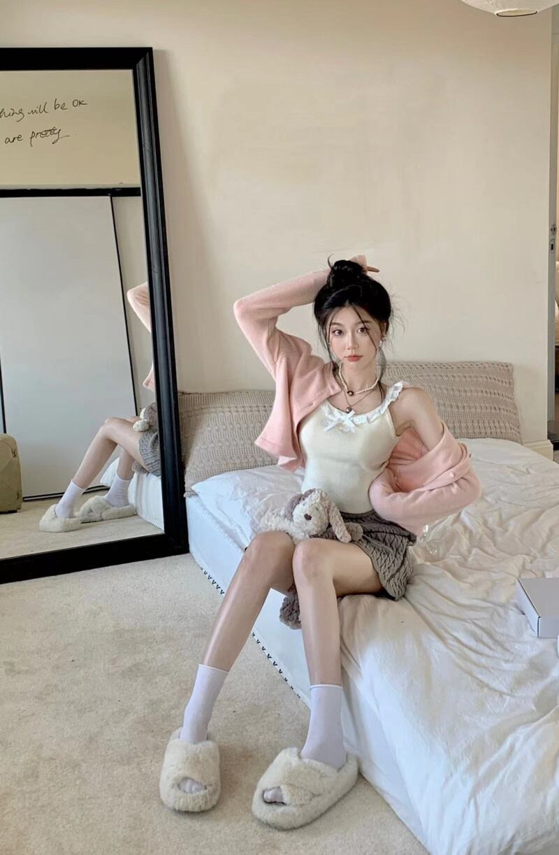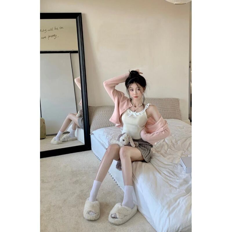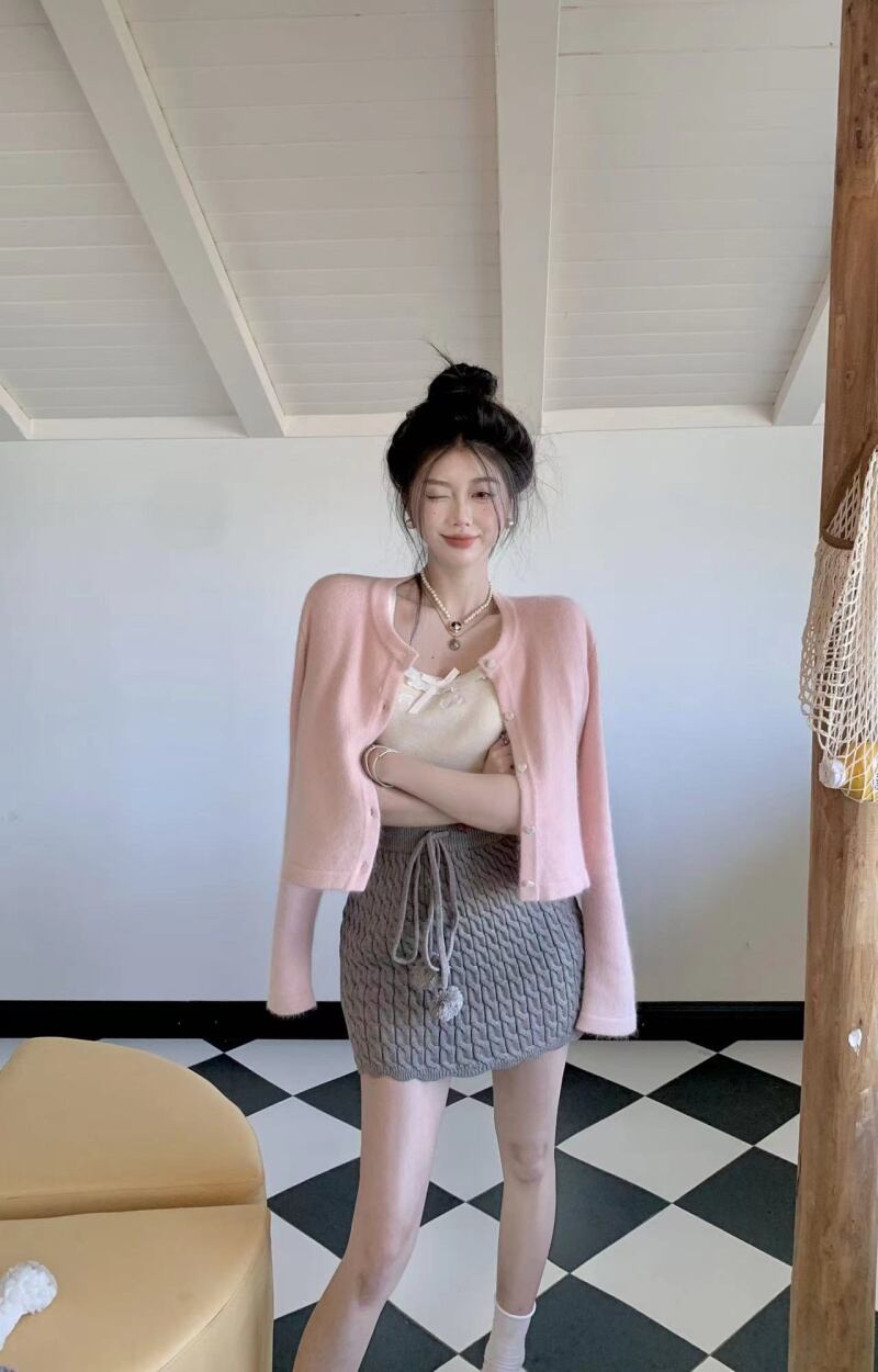 ショートセーター コート オータムルーズ薄手ニットカーディガントップス ピンク 大人ガーリー スウィート キュート カジュアル 秋物 10/5 秋冬 オータム ウインター ナチュラル mi4617824174177