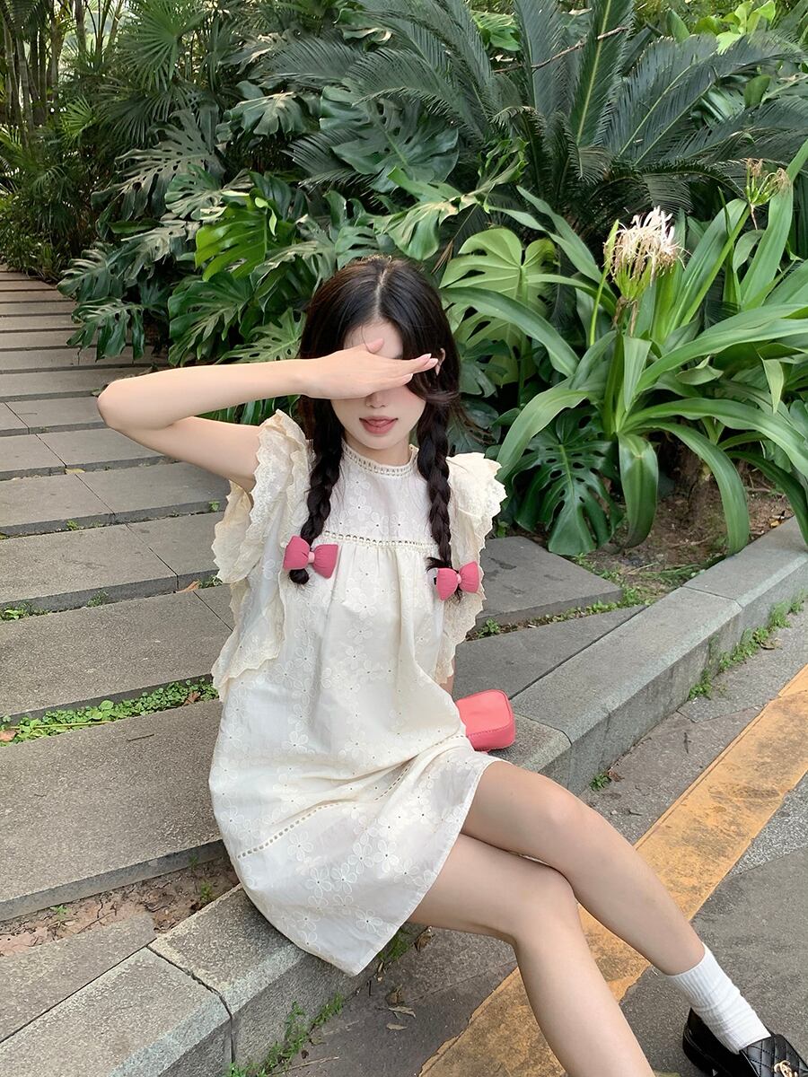 刺繍スリーブドレス サマールーズAラインスカート 大人ガーリー スウィート キュート カジュアル 夏物 10/5 秋冬 オータム ウインター ナチュラル mi4631317634148