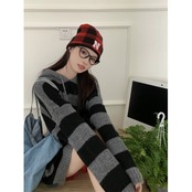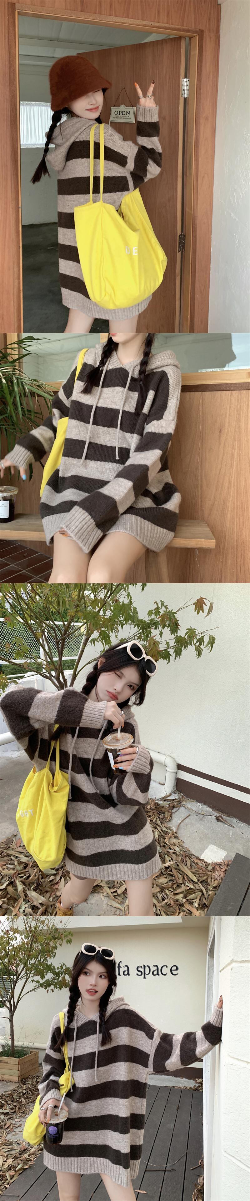 スタンダードスタイルストライプセーター オータムウィンタースリムルーズプルオーバー ニットトップス レトロ 秋物 冬物 10/5 秋冬 オータム ウインター ナチュラル mi4693440814685