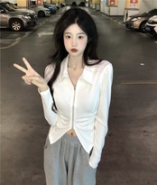 ジッパーカラーTシャツ シャツ オータムカーディガントップス ロング 秋物 10/5 秋冬 オータム ウインター ナチュラル mi4659969451464