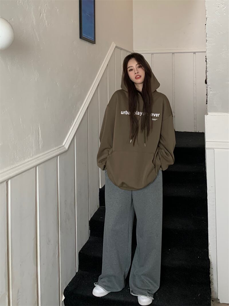 スタイルギャザープリントフードセーター オータムカジュアルルーズトップス 秋物 10/5 秋冬 オータム ウインター ナチュラル mi4611323568267