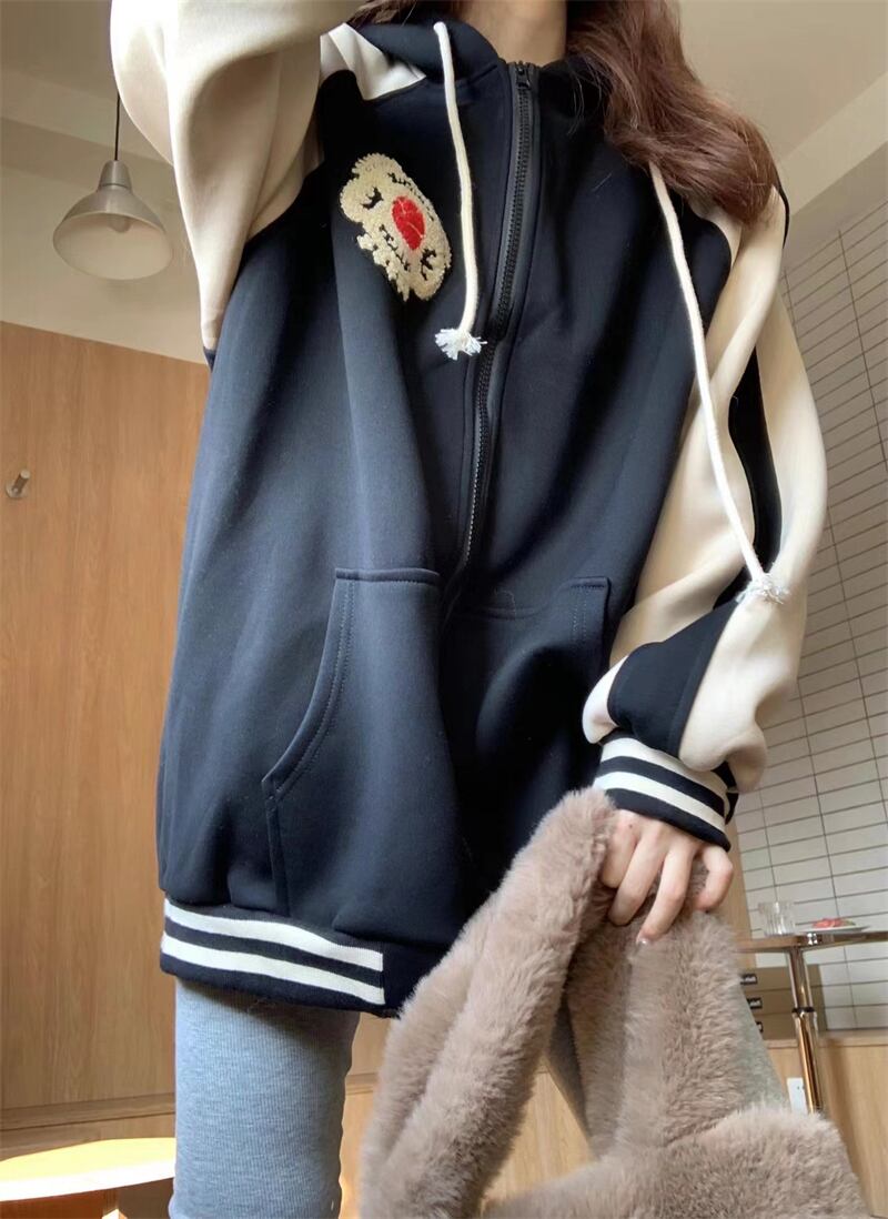 スタンダードカラールーズフードセーター コート オータムカジュアルカーディガントップス レトロ 秋物 10/5 秋冬 オータム ウインター ナチュラル mi4630015644902