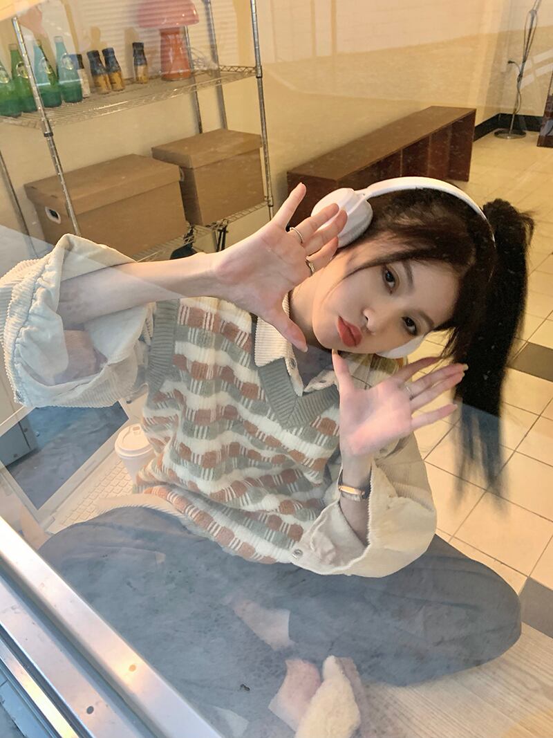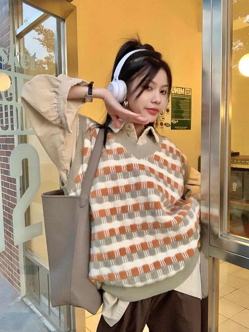 スタンダードカラーVネックニットオータムウィンタールーズトップス レトロ 秋物 冬物 10/5 秋冬 オータム ウインター ナチュラル mi4657108067379