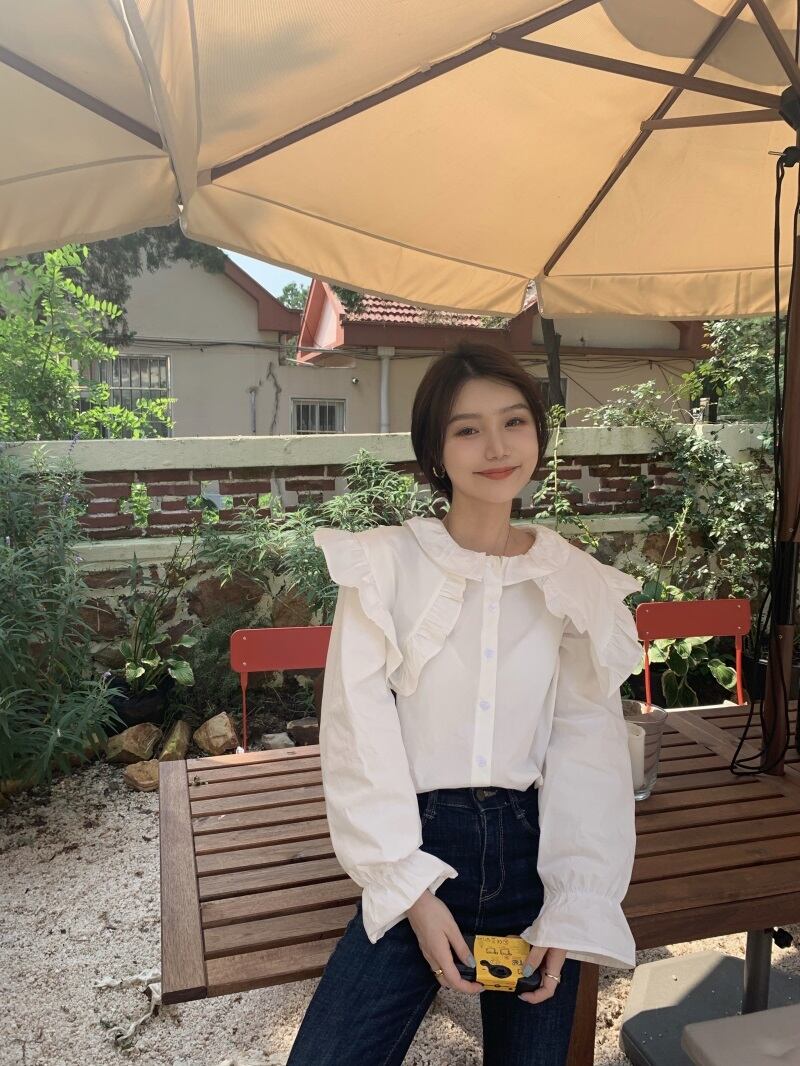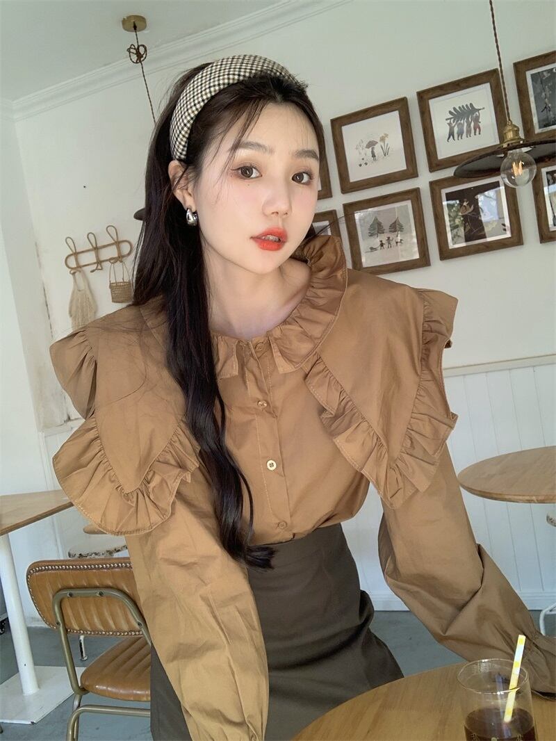 カラーシャツ オータムルーズ薄手トップス ロング 大人ガーリー スウィート キュート カジュアル 秋物 10/5 秋冬 オータム ウインター ナチュラル mi4617171138861
