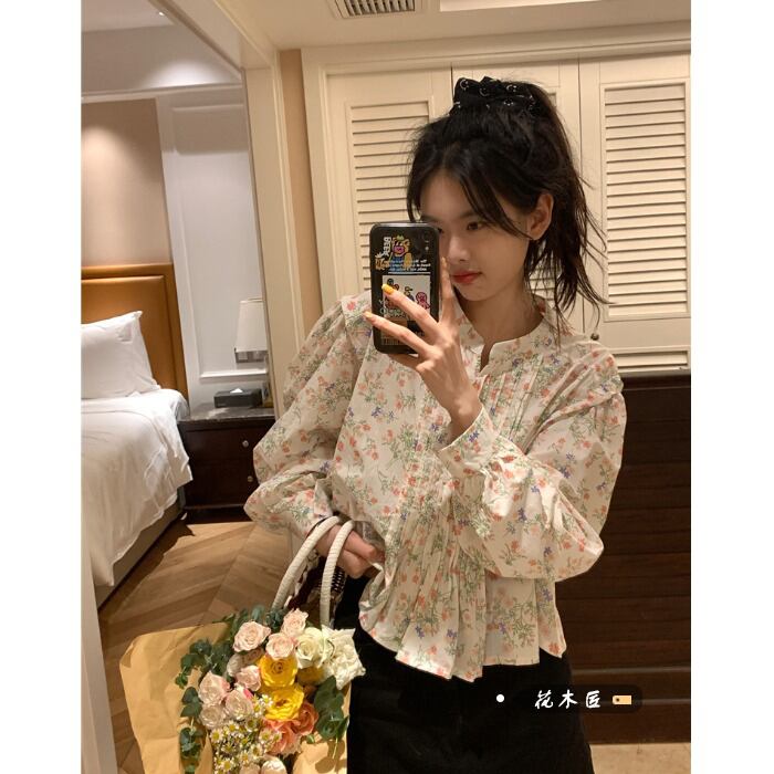 フローラルシャツ オータムプリーツルーズトップス ロング 大人ガーリー スウィート キュート カジュアル 秋物 花柄 10/5 秋冬 オータム ウインター ナチュラル mi4644179228726
