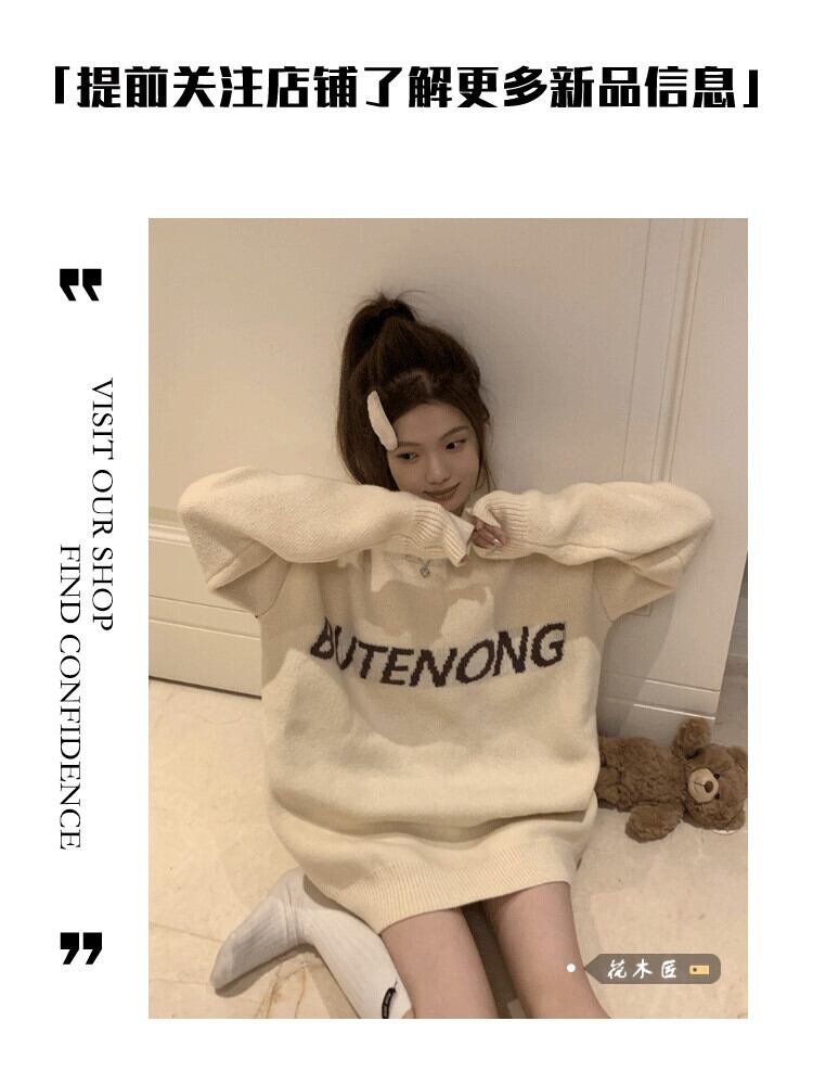 スタンダードプルオーバー セーター オータムルーズニットトップス レッド レトロ 刺繍 秋物 10/5 秋冬 オータム ウインター ナチュラル mi4662350404718