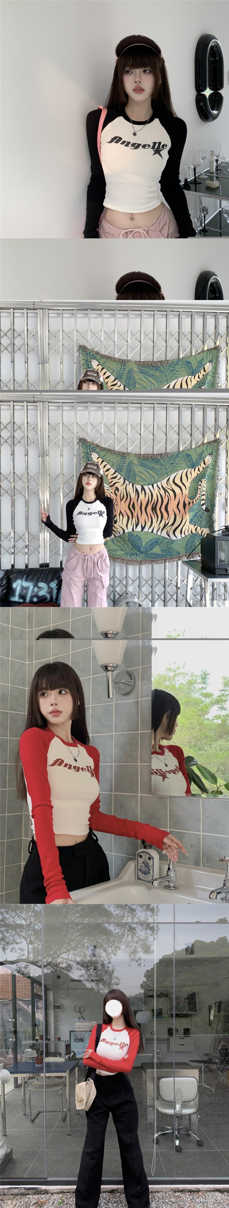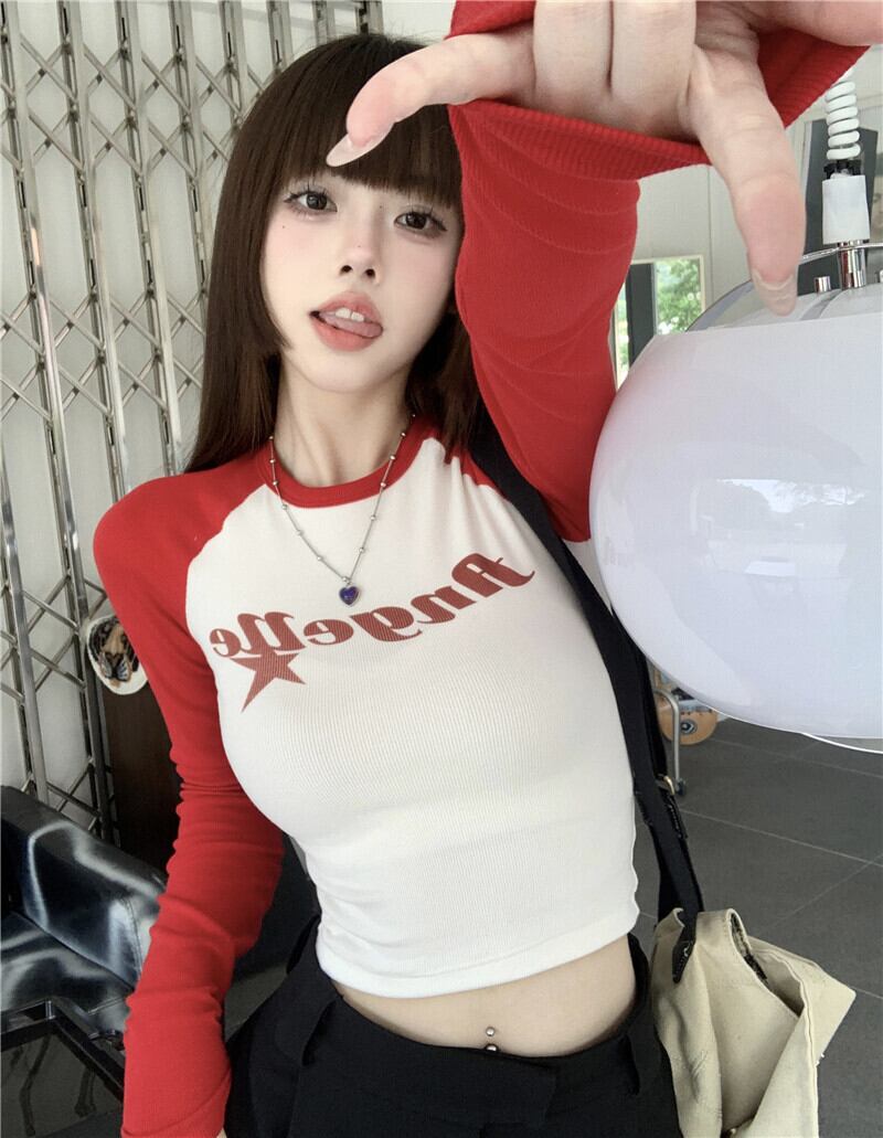 Tシャツ オータムカラースリムショートトップス ロング 秋物 10/5 秋冬 オータム ウインター ナチュラル mi4641746018166