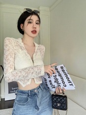 スタイルVネックシャツ オータムレーストップス ロング 大人ガーリー スウィート キュート カジュアル 秋物 10/5 秋冬 オータム ウインター ナチュラル mi463889352