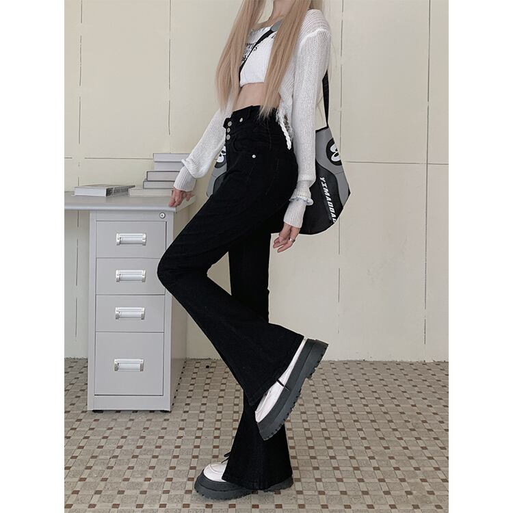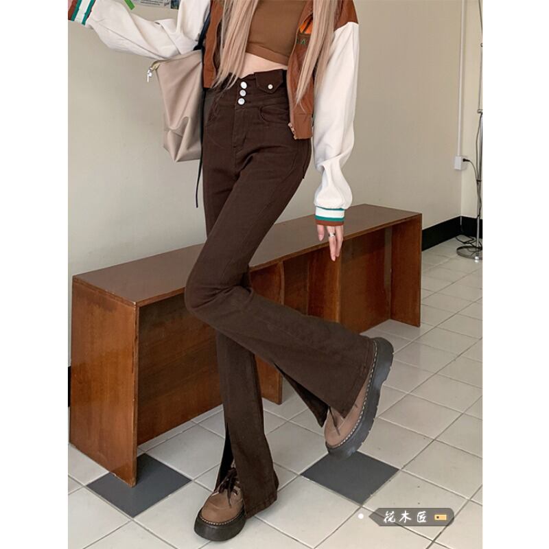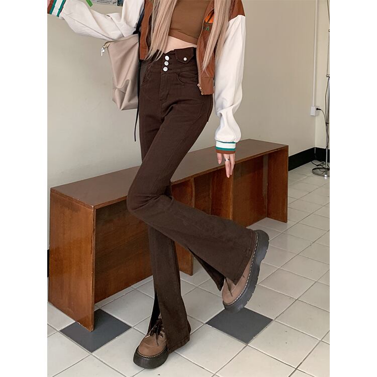 スタンダードジーンズ オータムハイウェストスリットパンツ スリム レッド レトロ 秋物 10/5 秋冬 オータム ウインター ナチュラル mi4674960408191