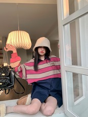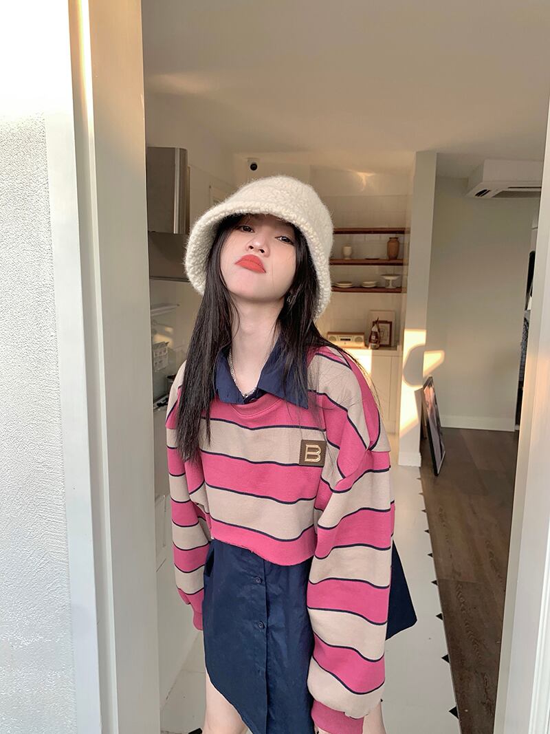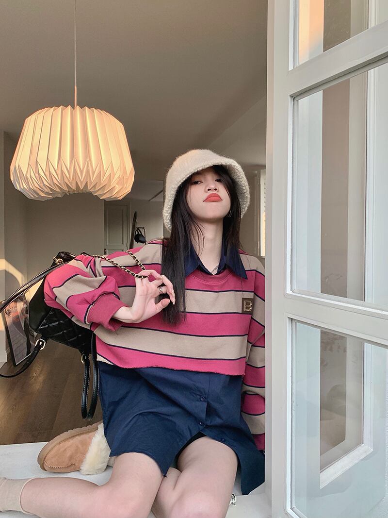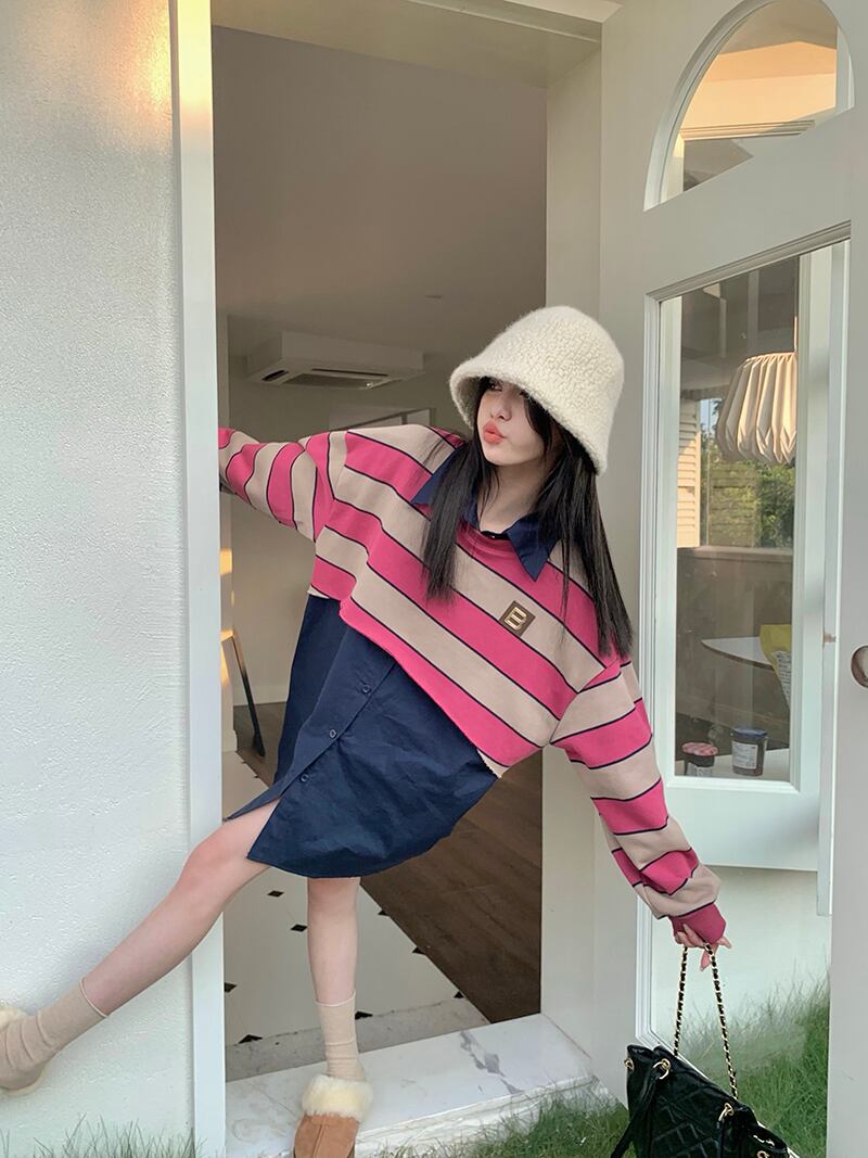 ストライプセーター シャツ オータムルーズ ロング 秋物 10/5 秋冬 オータム ウインター ナチュラル mi4619787292750