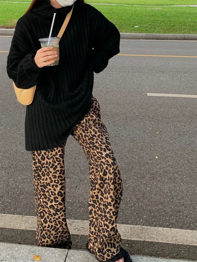 スタイルレオパードプリント柄カジュアルパンツ オータムルーズハイウェスト薄手 秋物 10/5 秋冬 オータム ウインター ナチュラル mi4687252387312