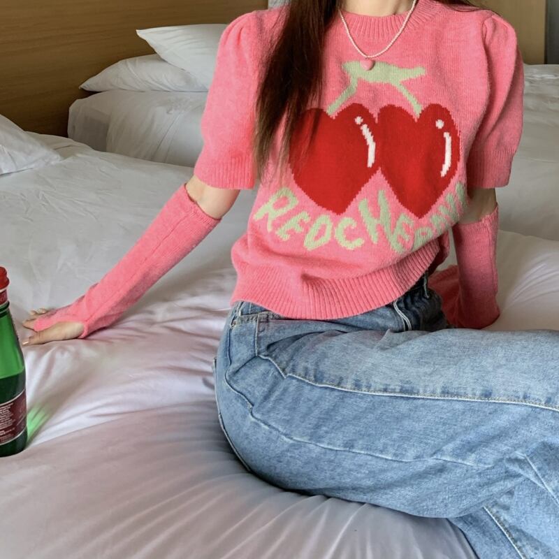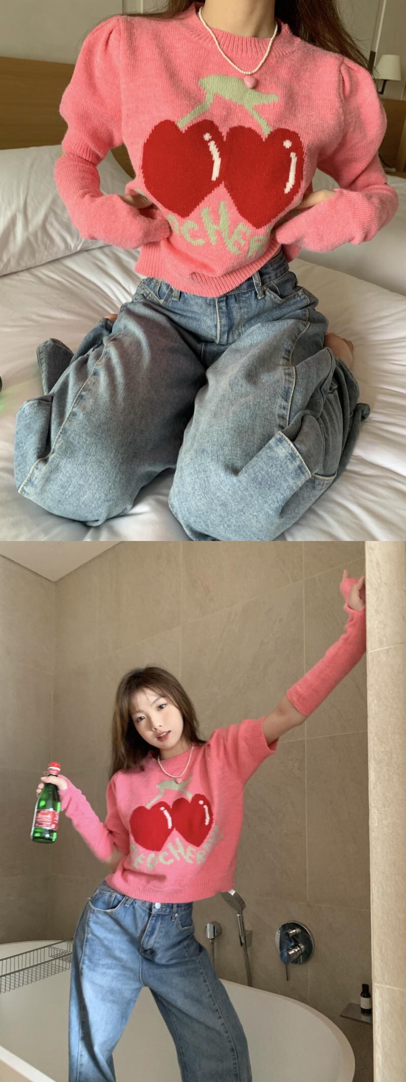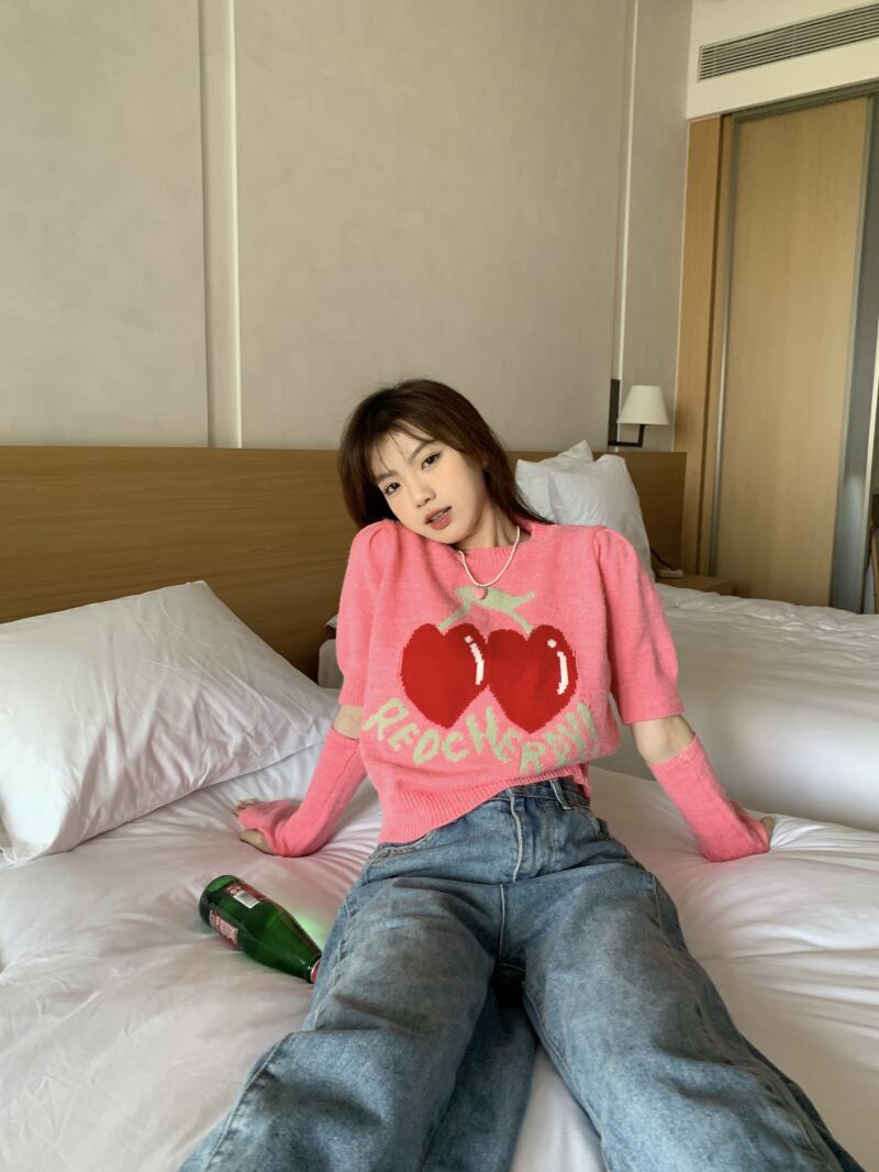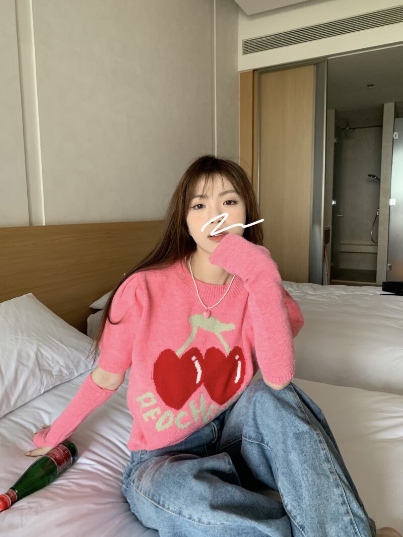 セーター オータムルーズプルオーバー ニットトップス レッド 刺繍 秋物 10/5 秋冬 オータム ウインター ナチュラル mi4623067427509